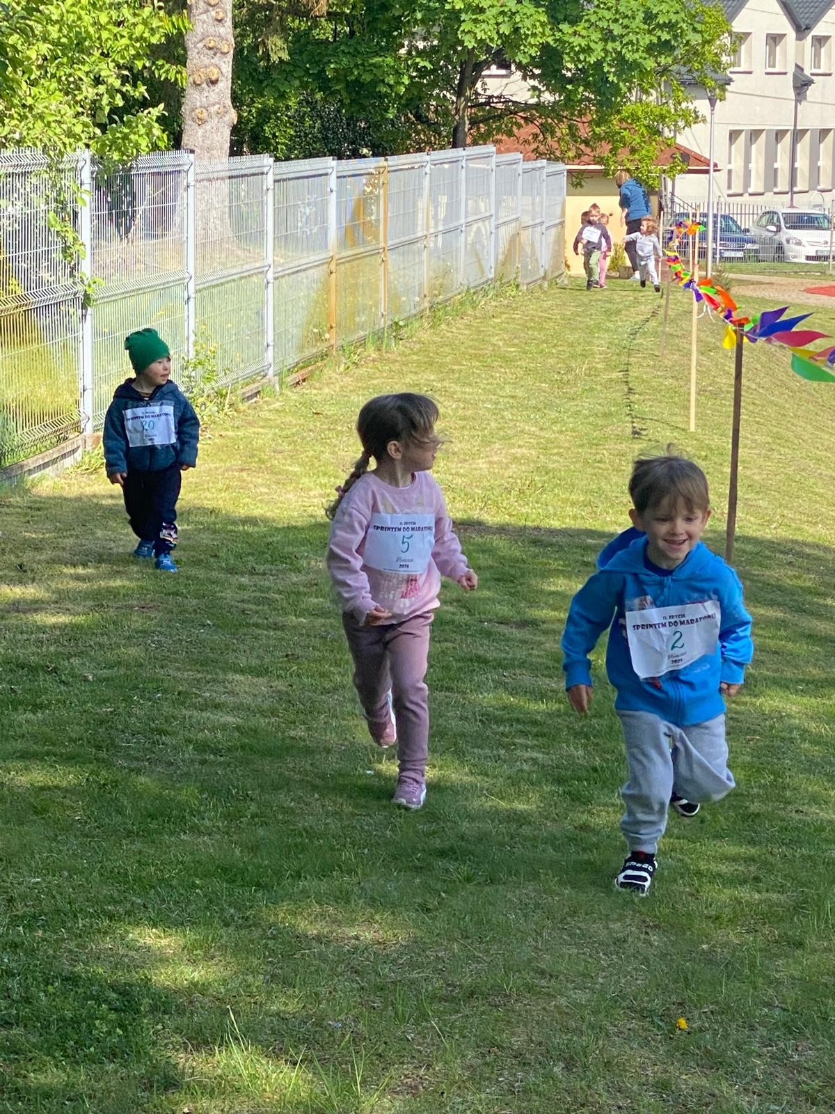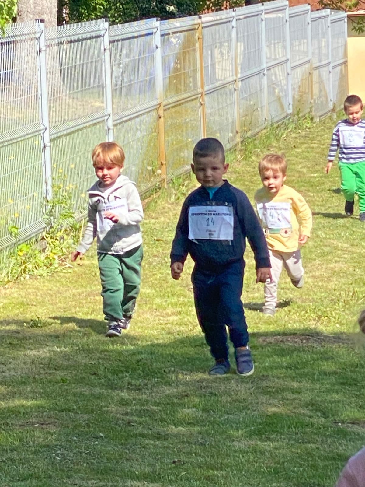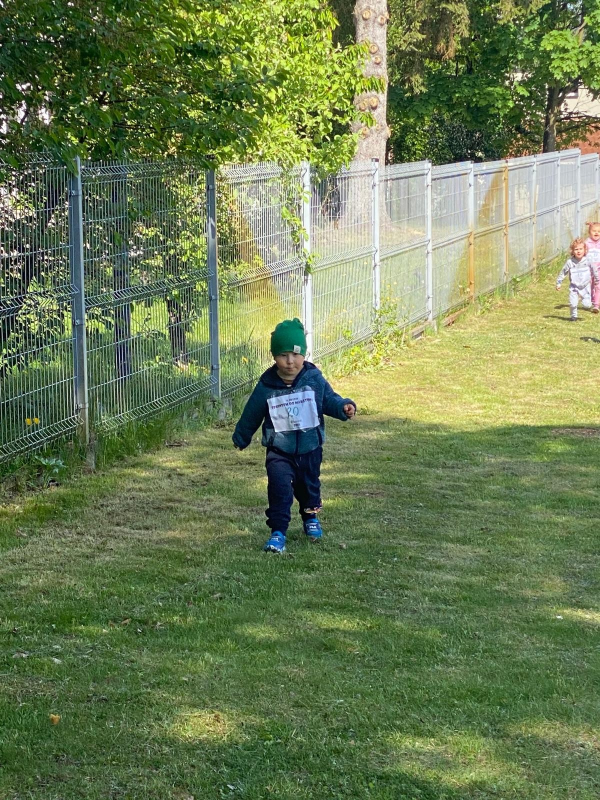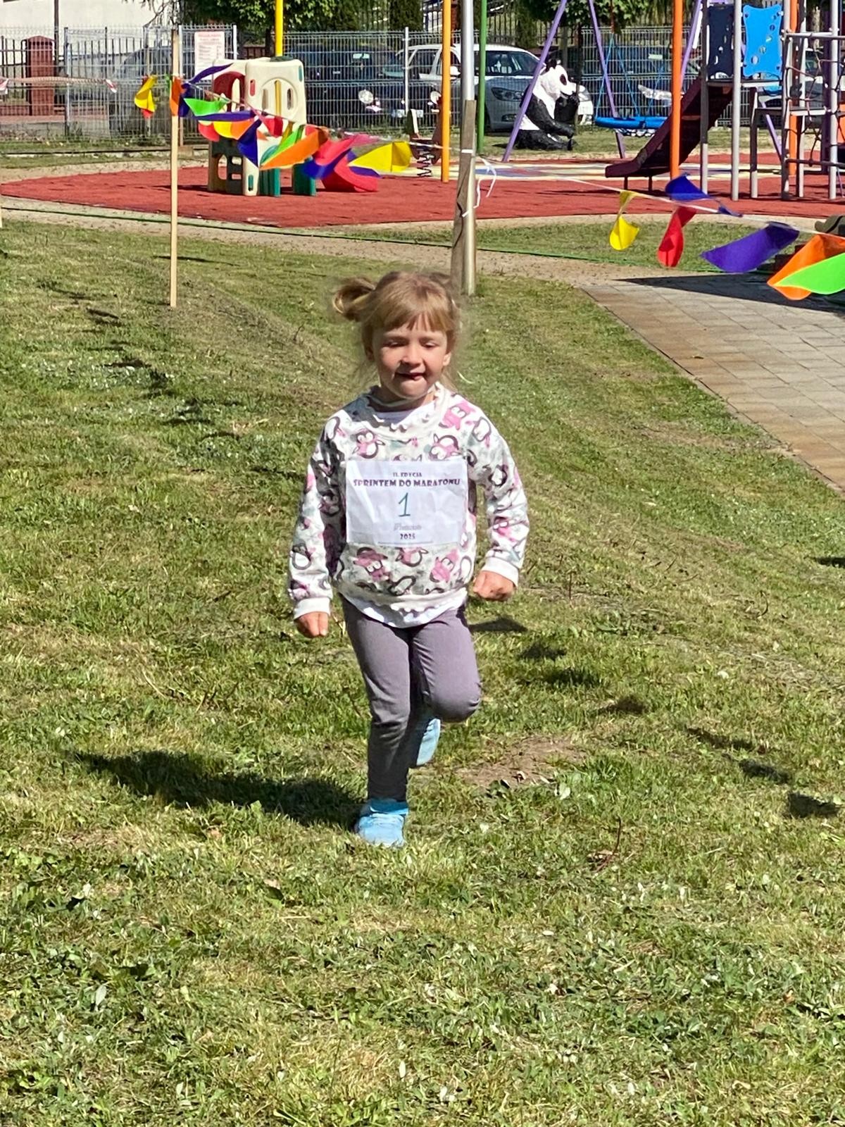 Dziś liski wzięły udział w akcji „Sprintem do maratonu”. Dzieci biegały po specjalnie wyznaczonej trasie w ogrodzie przedszkolnym co najmniej dziesięć razy 😉