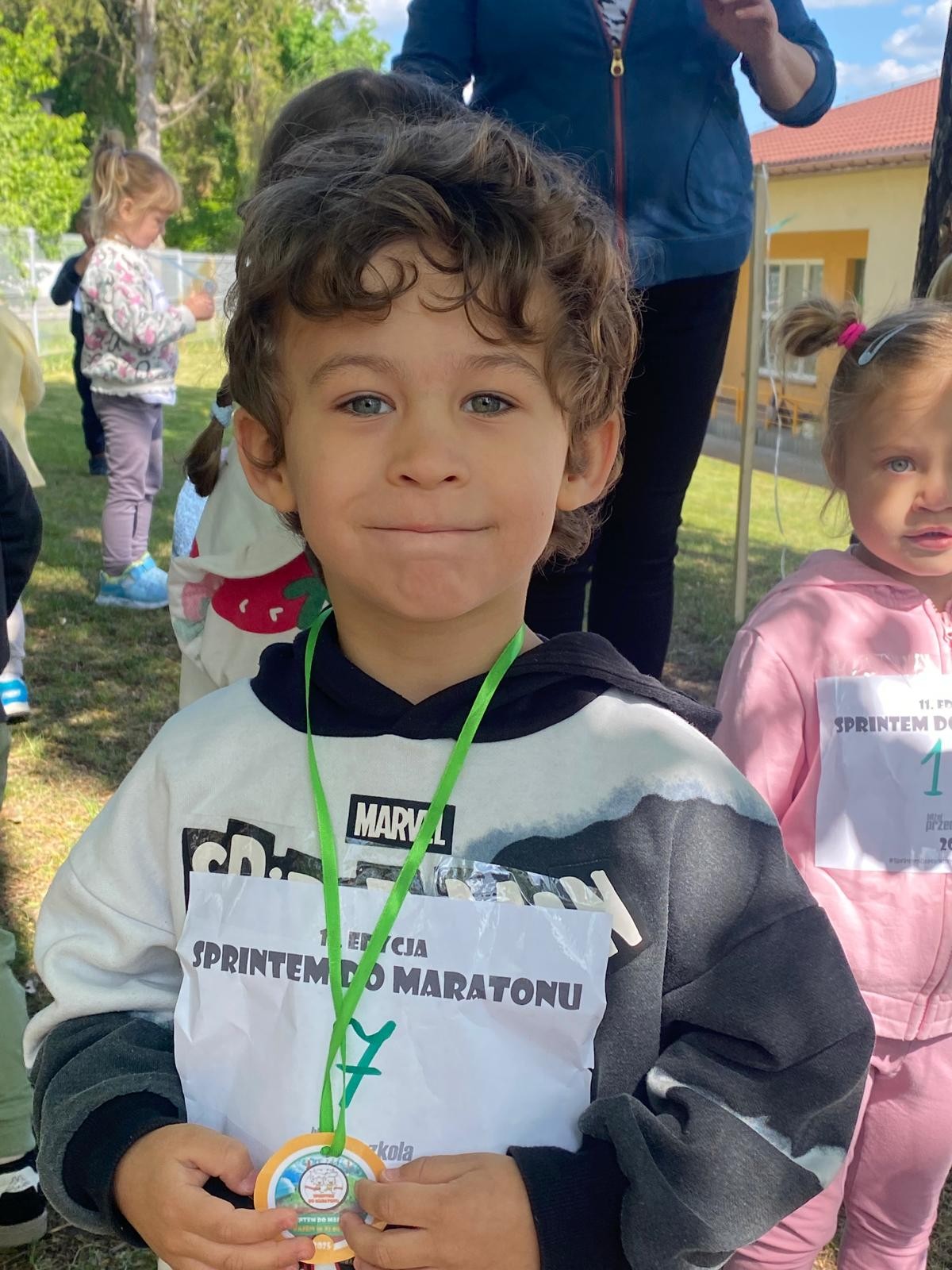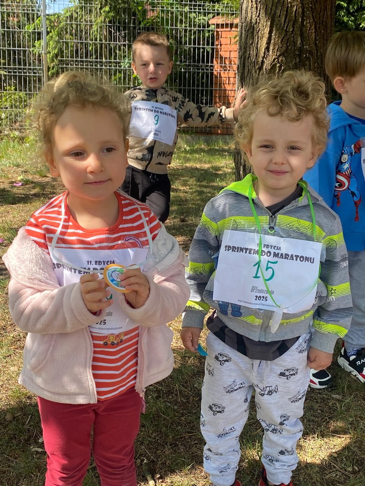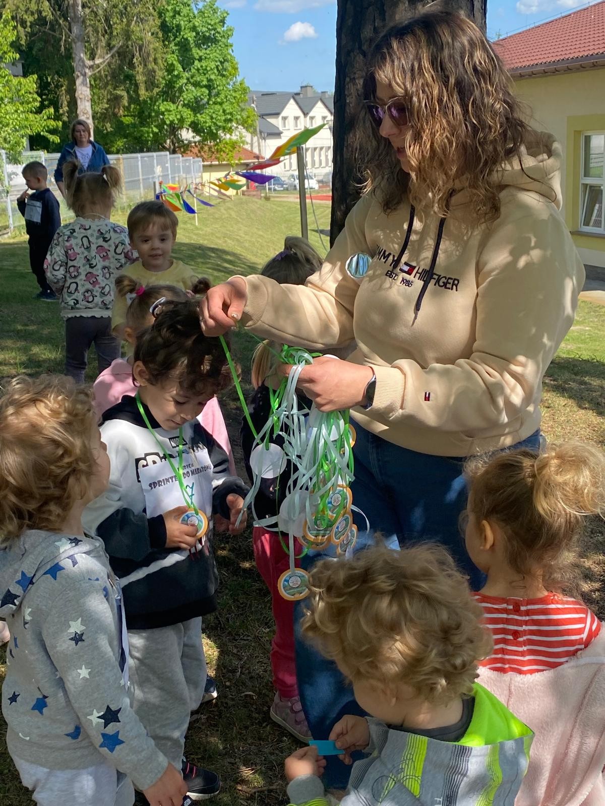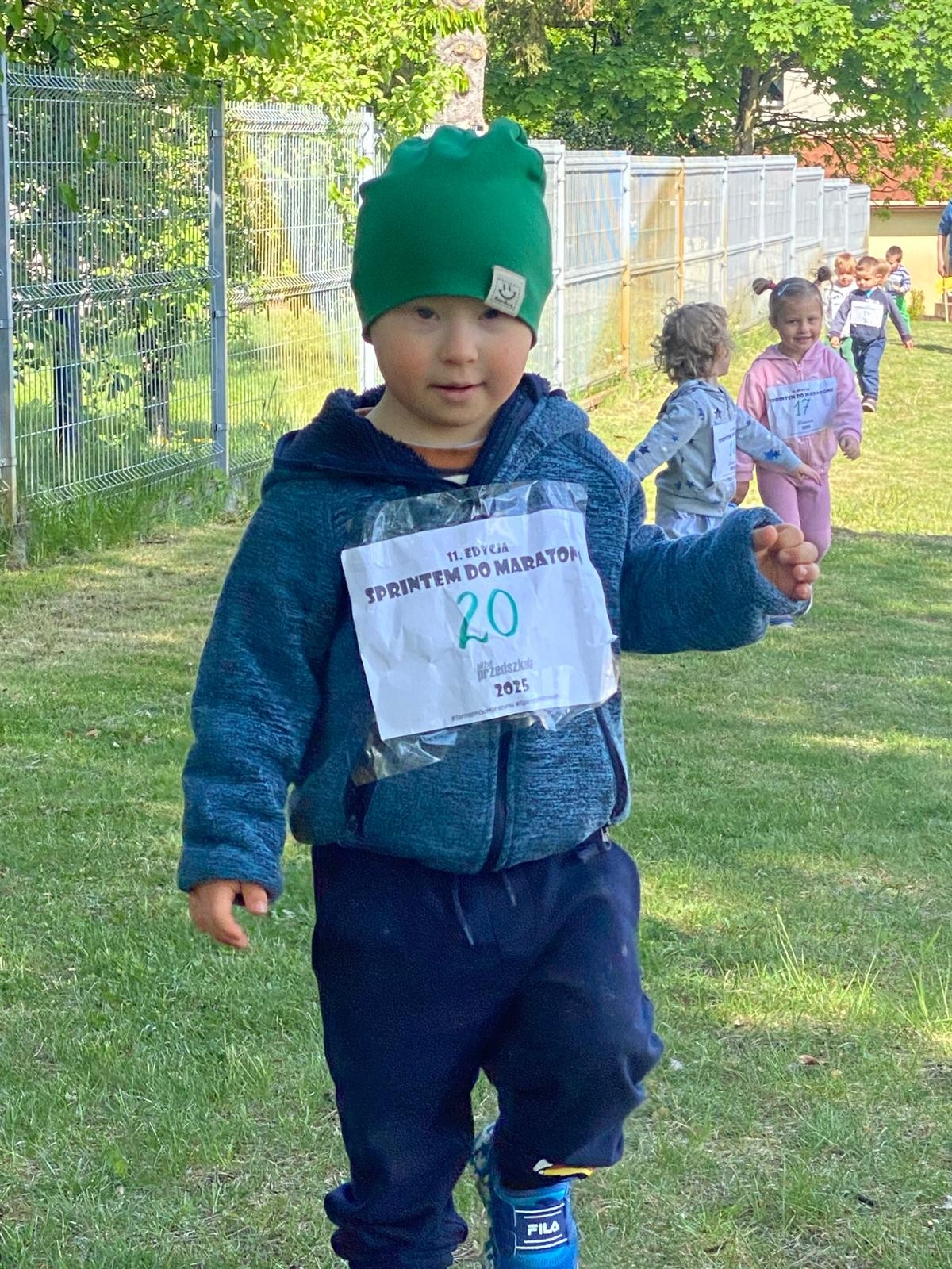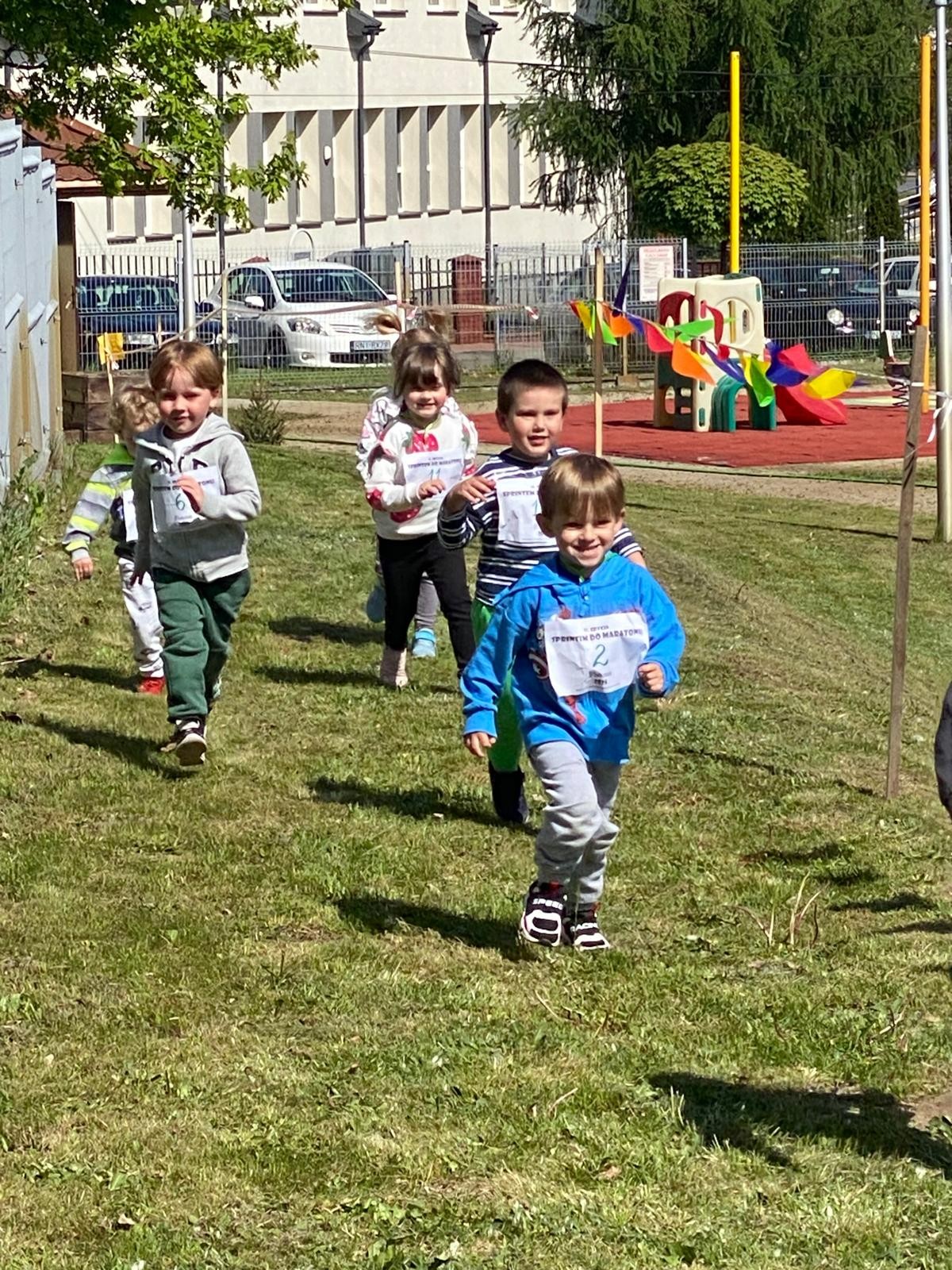 Dziś liski wzięły udział w akcji „Sprintem do maratonu”. Dzieci biegały po specjalnie wyznaczonej trasie w ogrodzie przedszkolnym co najmniej dziesięć razy 😉