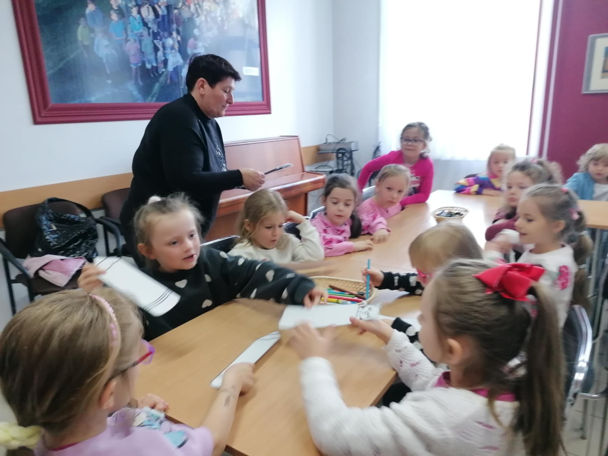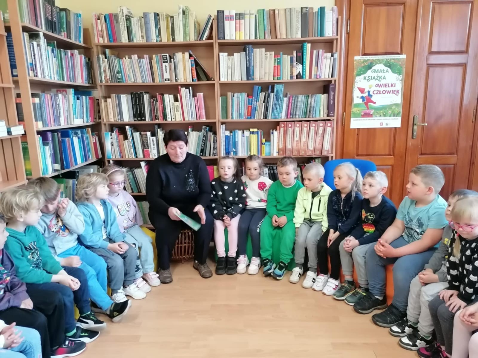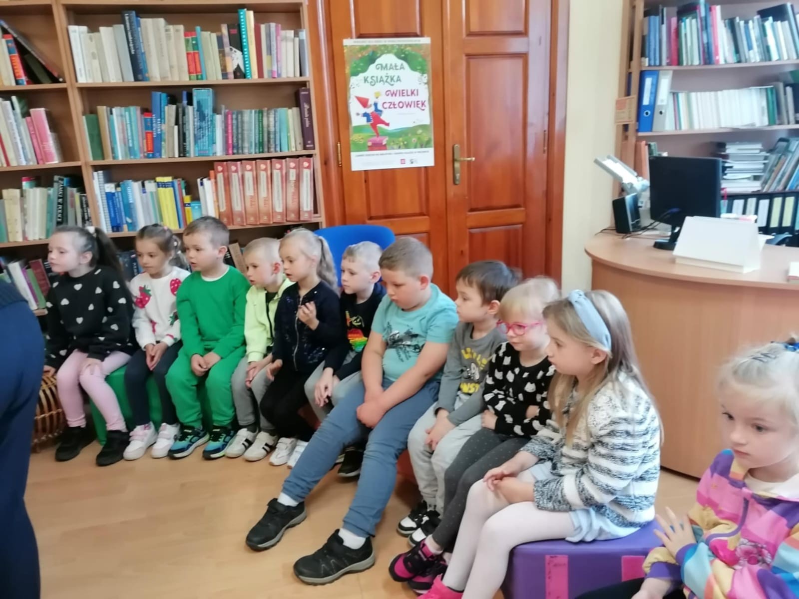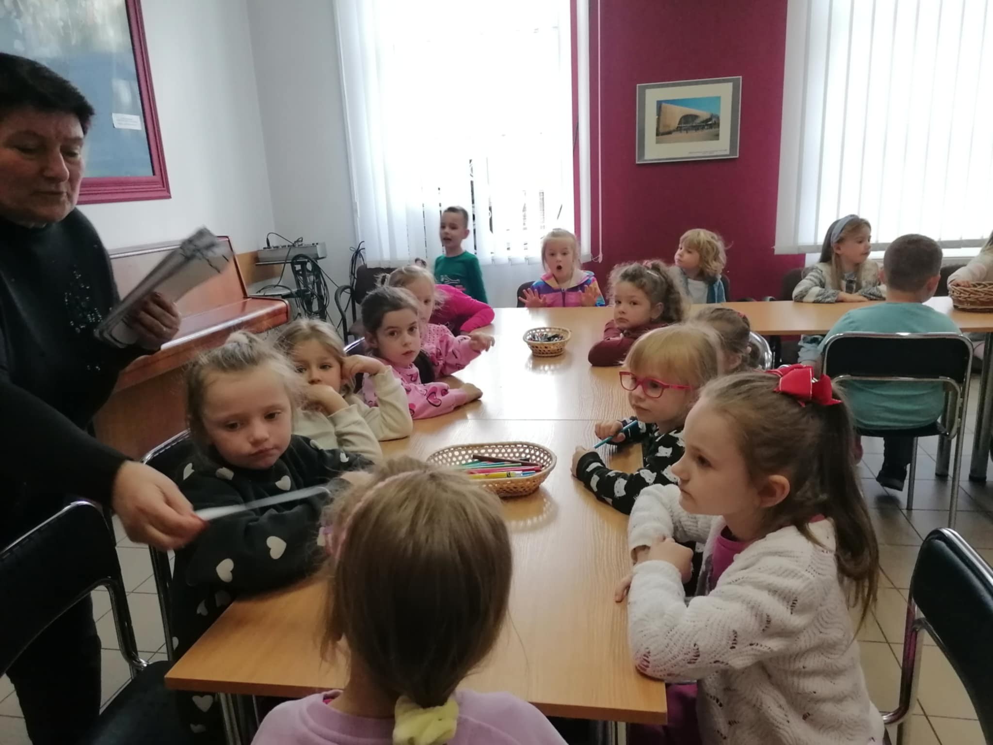 Z okazji Dnia Bibliotekarza postanowiliśmy wybrać się do biblioteki. Pani opowiedziała nam o pracy bibliotekarza, o tym, jak należy się zachowywać w bibliotece, jak pożyczać książki i jak o nie dbać. Przeczytała nam również bajkę pt. „Kamyczek w bilbiotece”. Na zakończenie Pani oprowadziła dzieci po bibliotece; dzieci mogły wybrać sobie książki, które je zainteresowały i je pooglądać. Bardzo dziękujemy za miłe spotkanie i poświęcony nam czas!