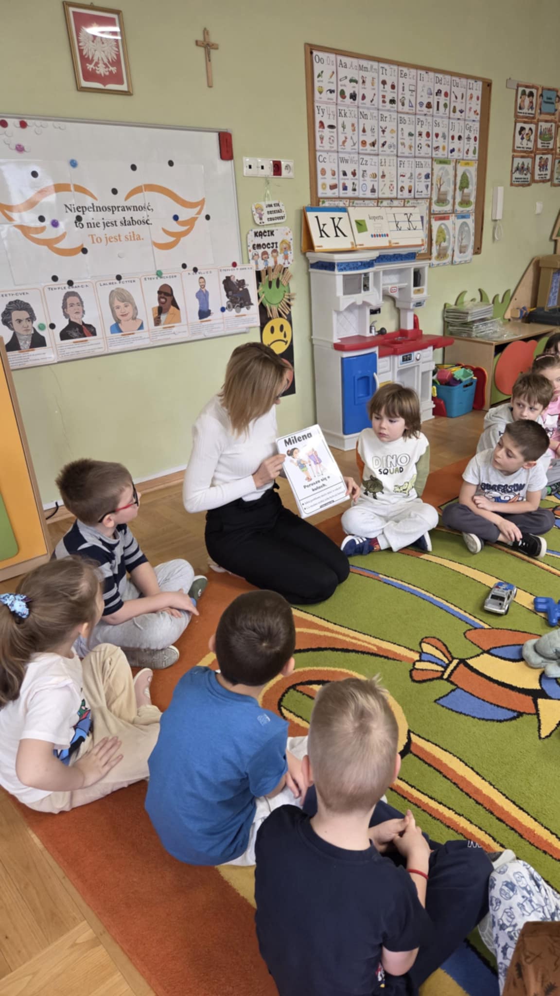 Dziś w naszej grupie odbyły się zajęcia związane z Dniem Osób z Niepełnosprawnością. Celem zajęć było kształtowanie u dzieci postaw szacunku, empatii i zrozumienia wobec osób, które na co dzień mierzą się z różnymi trudnościami.