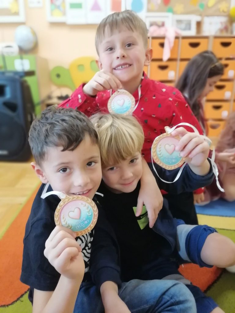 Zabawy z okazji Dnia Życzliwości upłynęły w przedszkolu w bardzo ciepłej i serdecznej atmosferze. Dzieci piekły pyszne ciasteczka, którymi później dzieliły się z innymi. Rozdawały drobne upominki przechodniom, sprawiając im miłe niespodzianki. Tego dnia opiekowały się także młodszymi kolegami, pomagając im w zabawach i codziennych czynnościach. Był to wyjątkowy dzień, pełen dobroci i wzajemnej troski.
