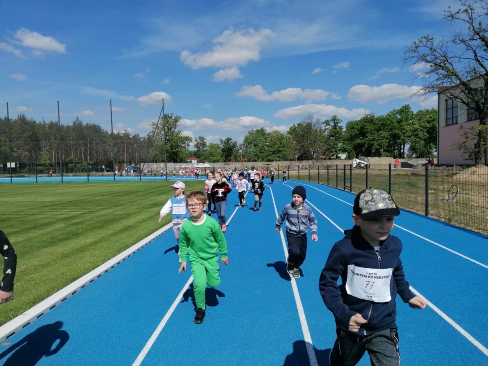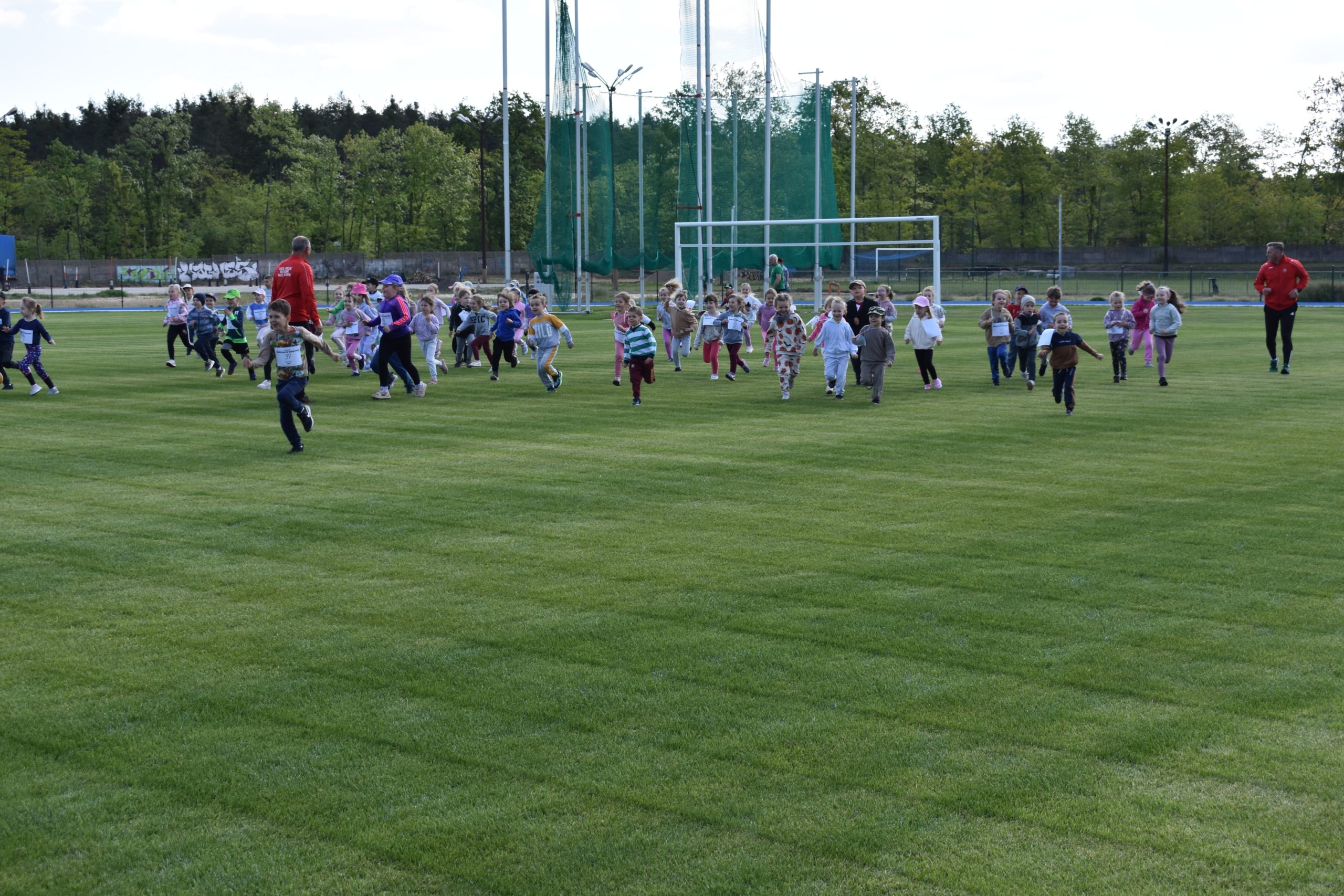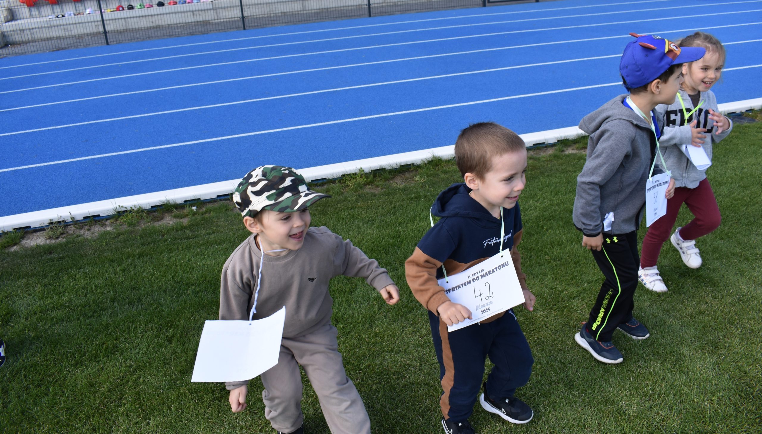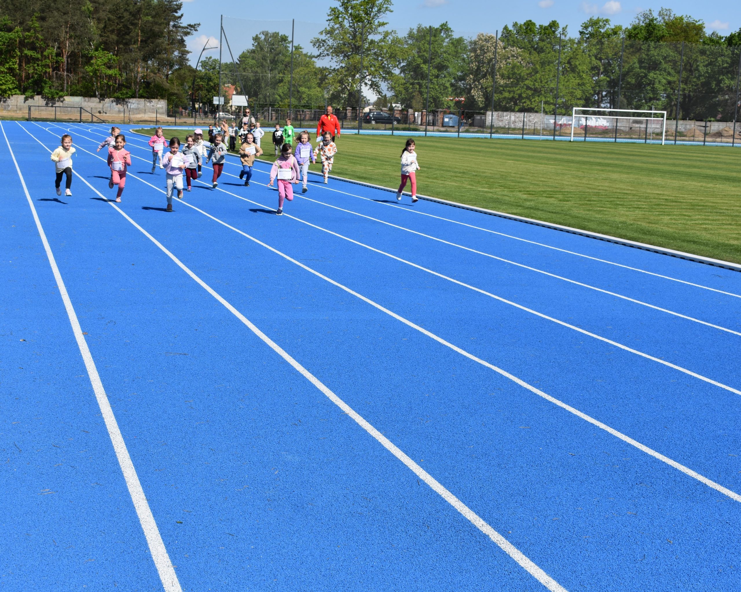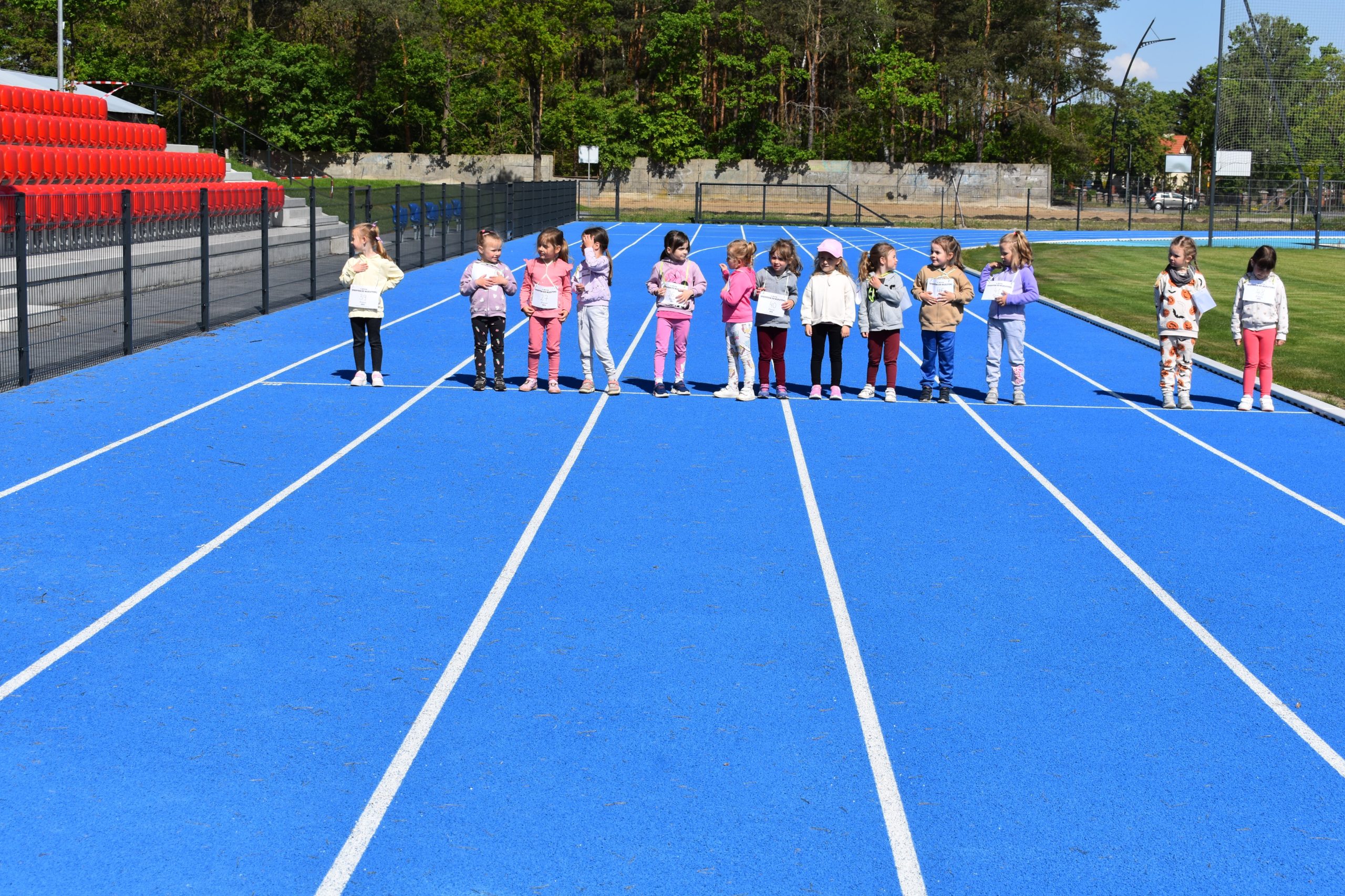 Na zaproszenie Panów trenerów z MOSiR w dniu dzisiejszym wybraliśmy się na stadion, aby wziąć udział w biegu pod hasłem „Sprintem do maratonu”. Naszą wizytę rozpoczęliśmy od rozgrzewki a następnie dzieci pełne energii ruszyły do biegu, pokonując wyznaczoną trasę. Celem wydarzenia jest promocja zdrowego stylu życia i aktywnego spędzania czasu, w tym czasu na świeżym powietrzu, popularyzowanie biegów wśród dzieci oraz kształtowanie u przedszkolaków nawyku podejmowania aktywności fizycznej w dorosłym życiu. Panom trenerom dziękujemy za zorganizowanie biegu i gratulujemy wszystkim uczestnikom maratonu, zawsze pamiętając, że sport to zdrowie!