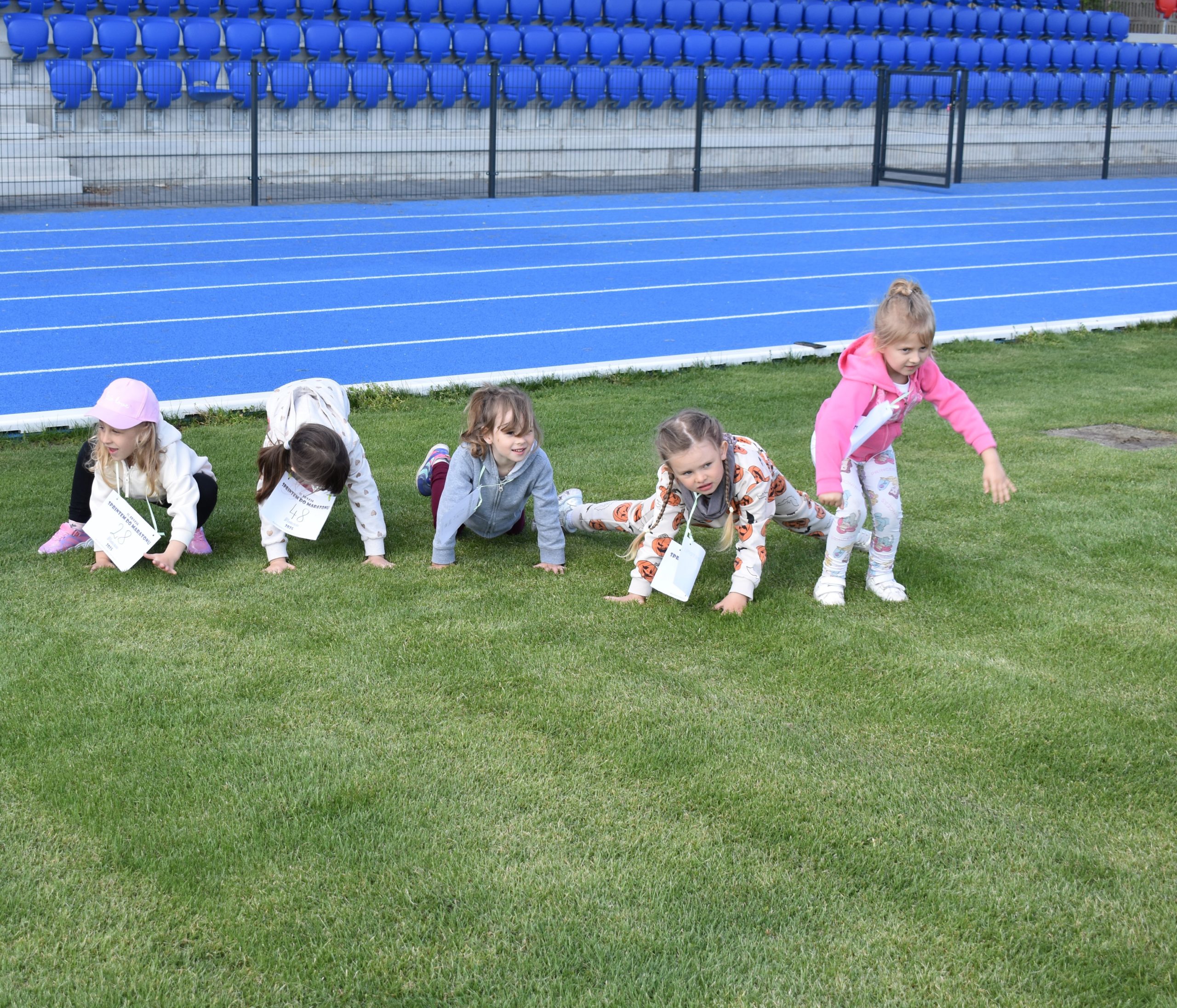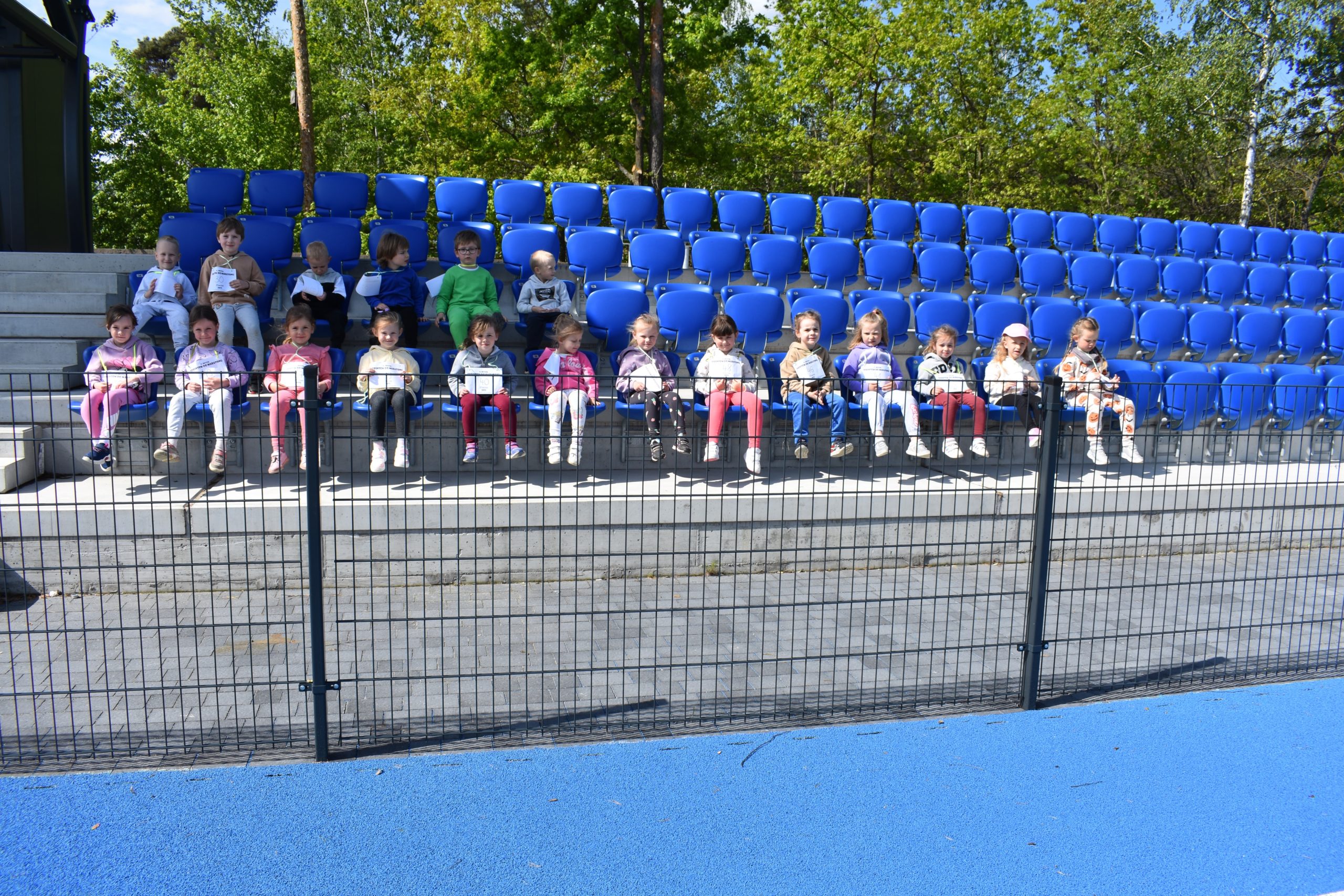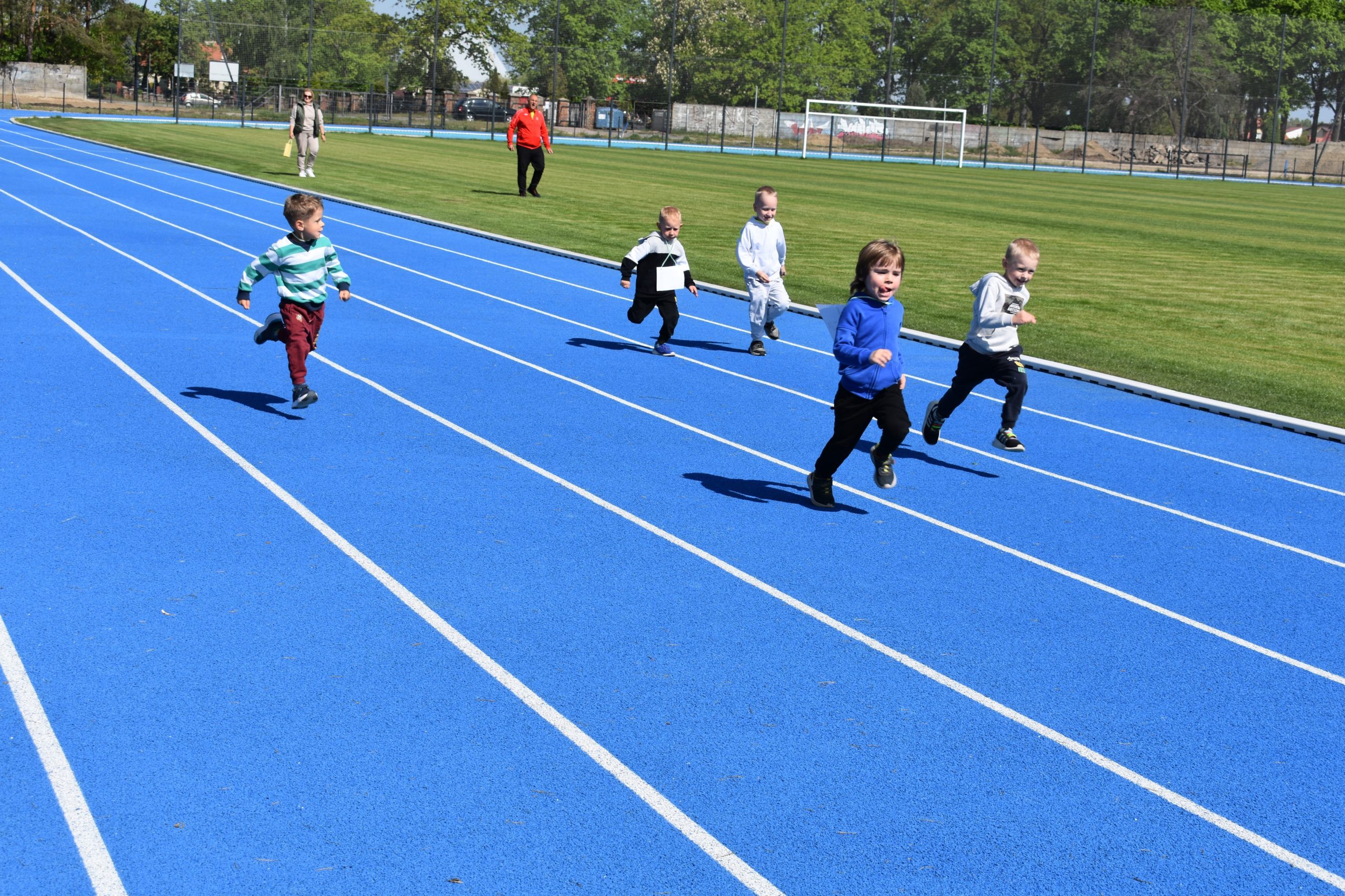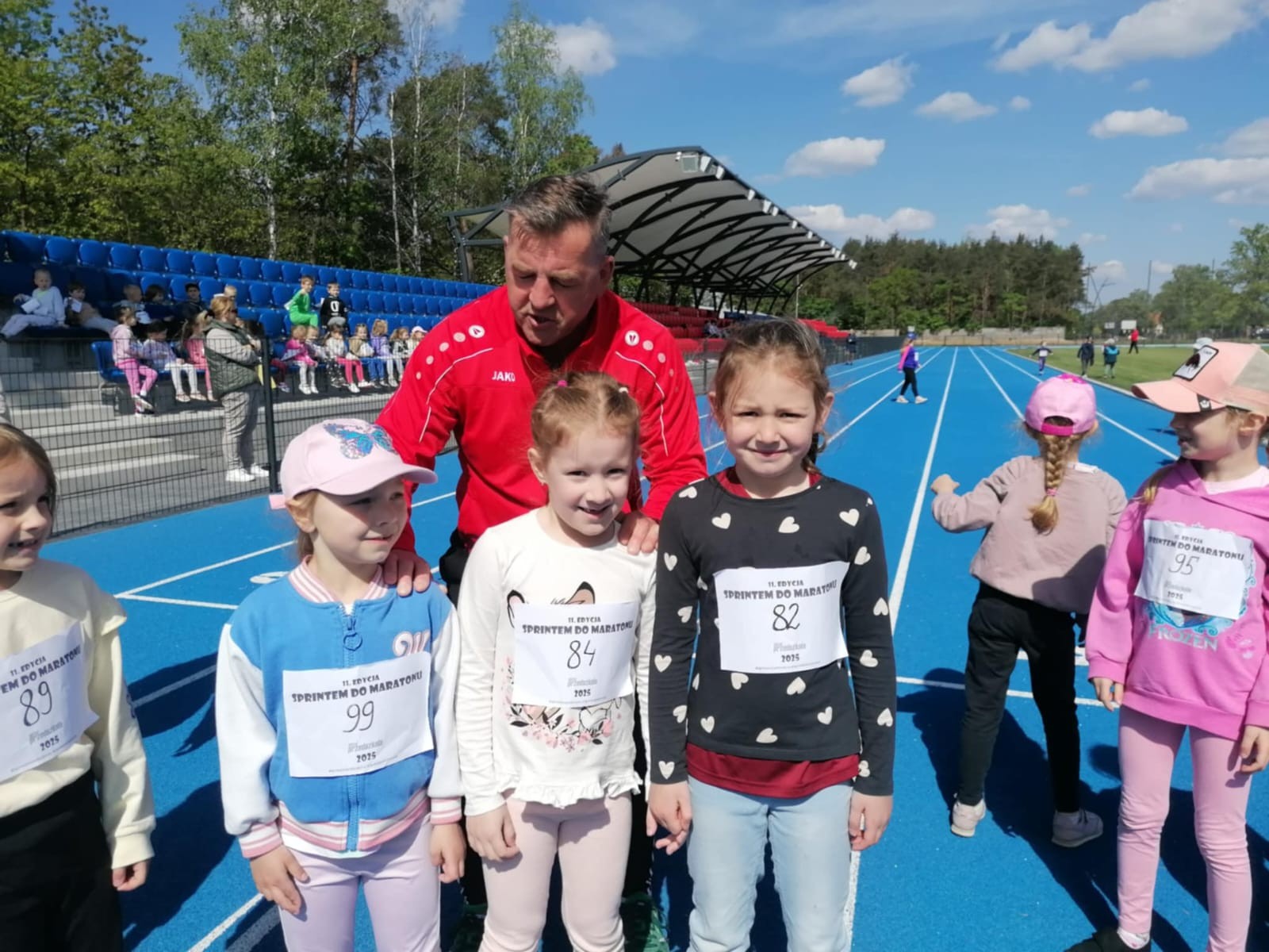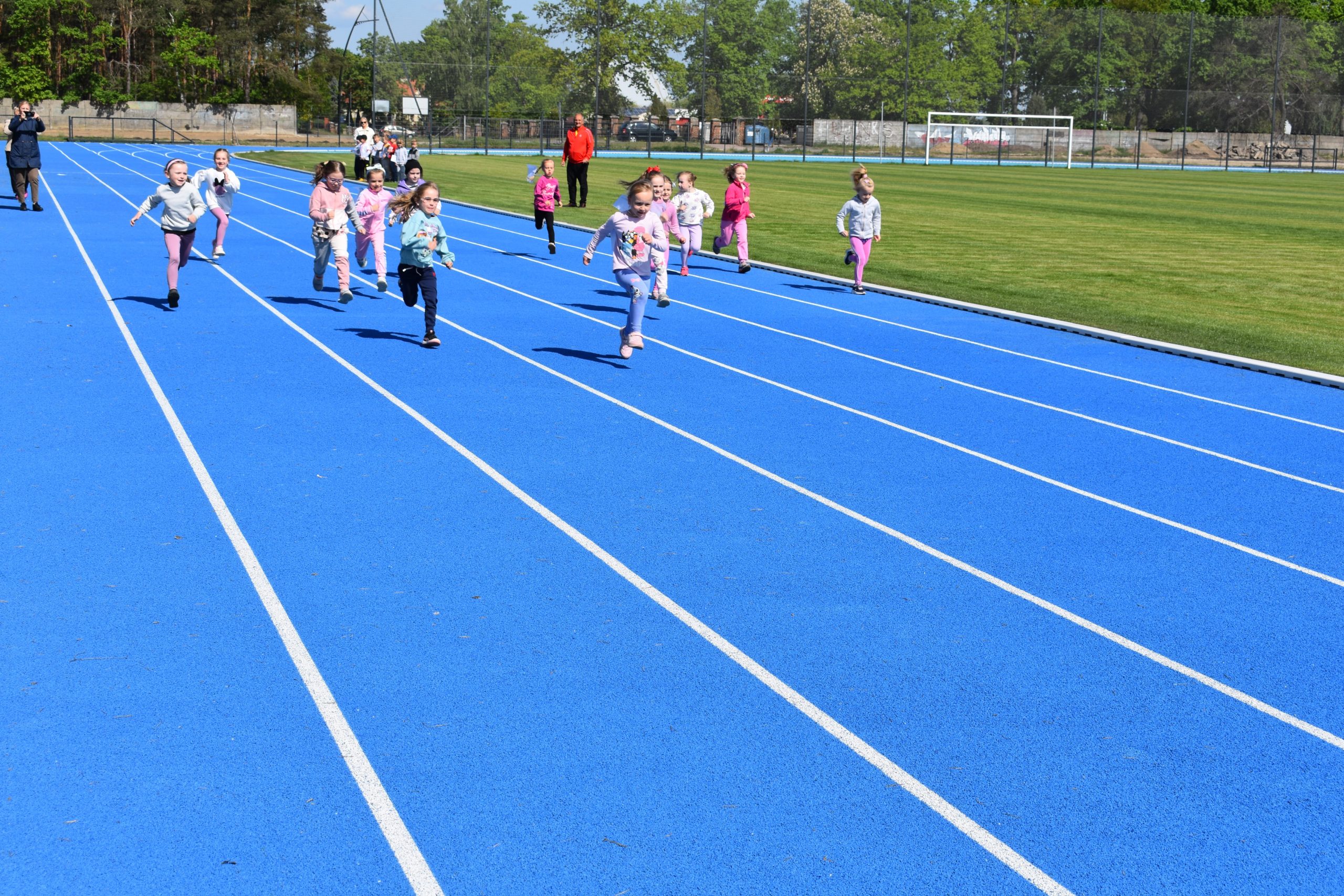 Na zaproszenie Panów trenerów z MOSiR w dniu dzisiejszym wybraliśmy się na stadion, aby wziąć udział w biegu pod hasłem „Sprintem do maratonu”. Naszą wizytę rozpoczęliśmy od rozgrzewki a następnie dzieci pełne energii ruszyły do biegu, pokonując wyznaczoną trasę. Celem wydarzenia jest promocja zdrowego stylu życia i aktywnego spędzania czasu, w tym czasu na świeżym powietrzu, popularyzowanie biegów wśród dzieci oraz kształtowanie u przedszkolaków nawyku podejmowania aktywności fizycznej w dorosłym życiu. Panom trenerom dziękujemy za zorganizowanie biegu i gratulujemy wszystkim uczestnikom maratonu, zawsze pamiętając, że sport to zdrowie!