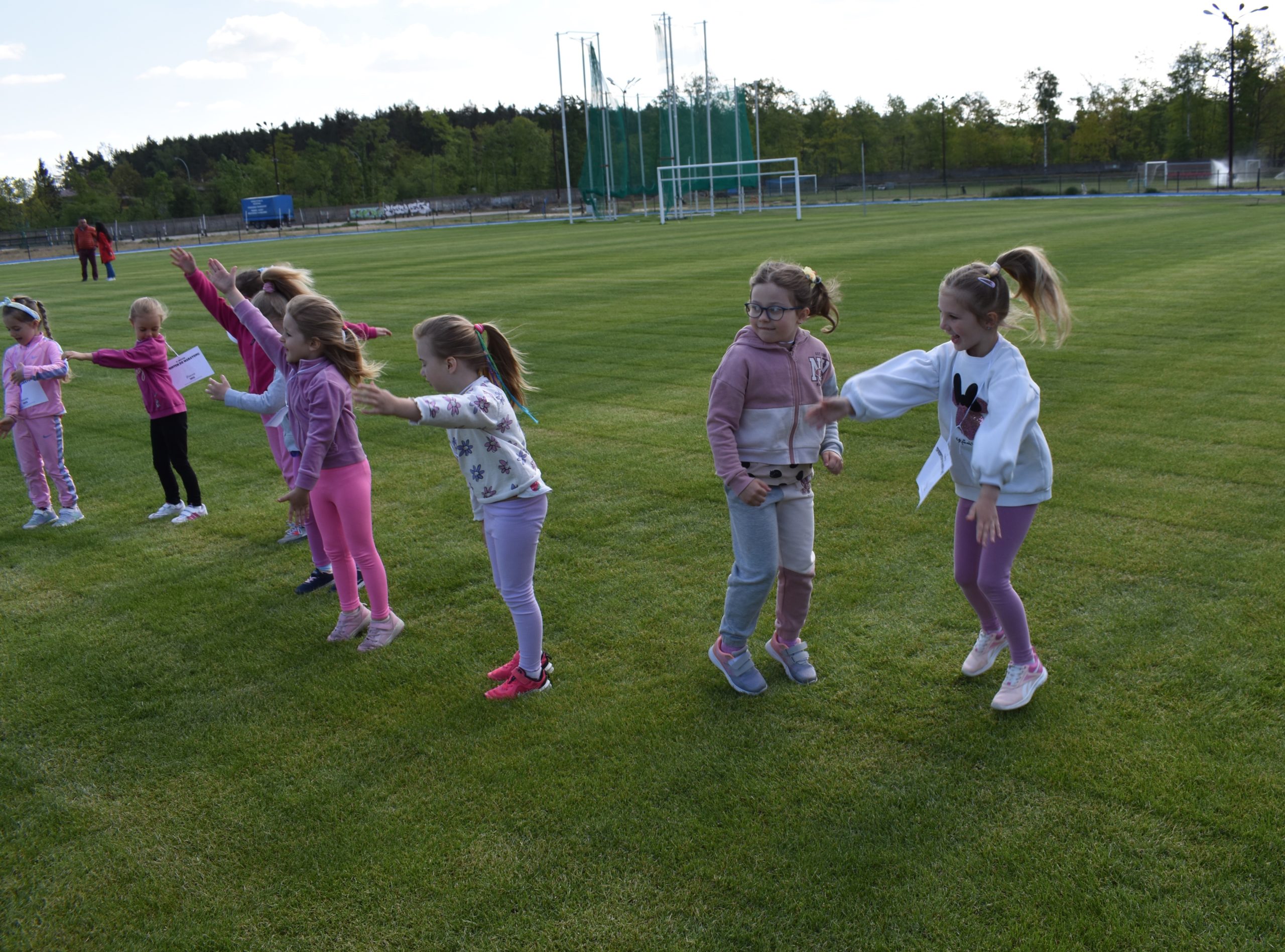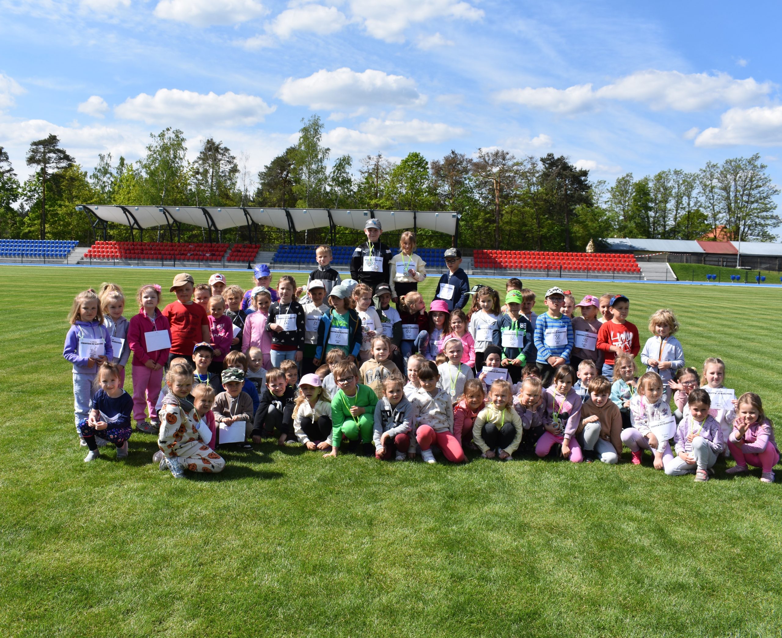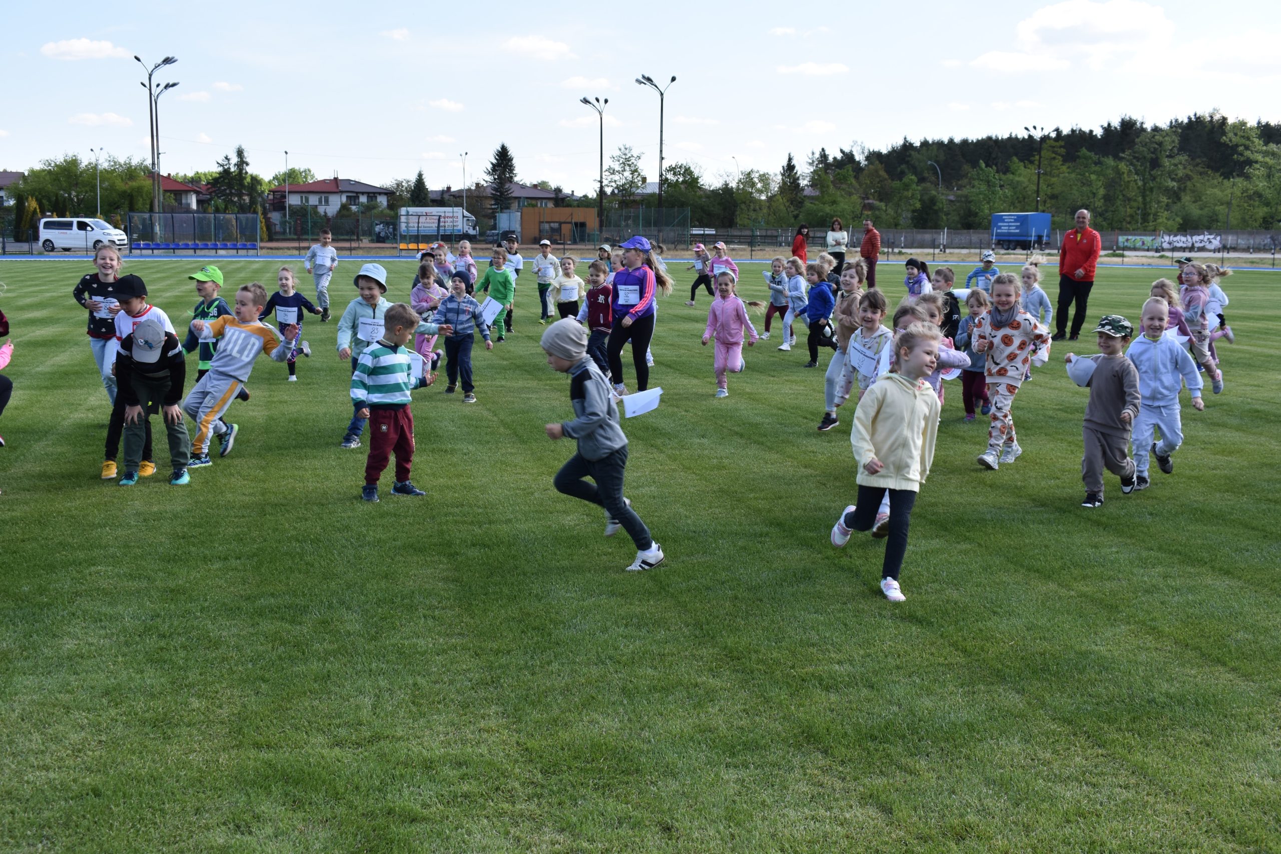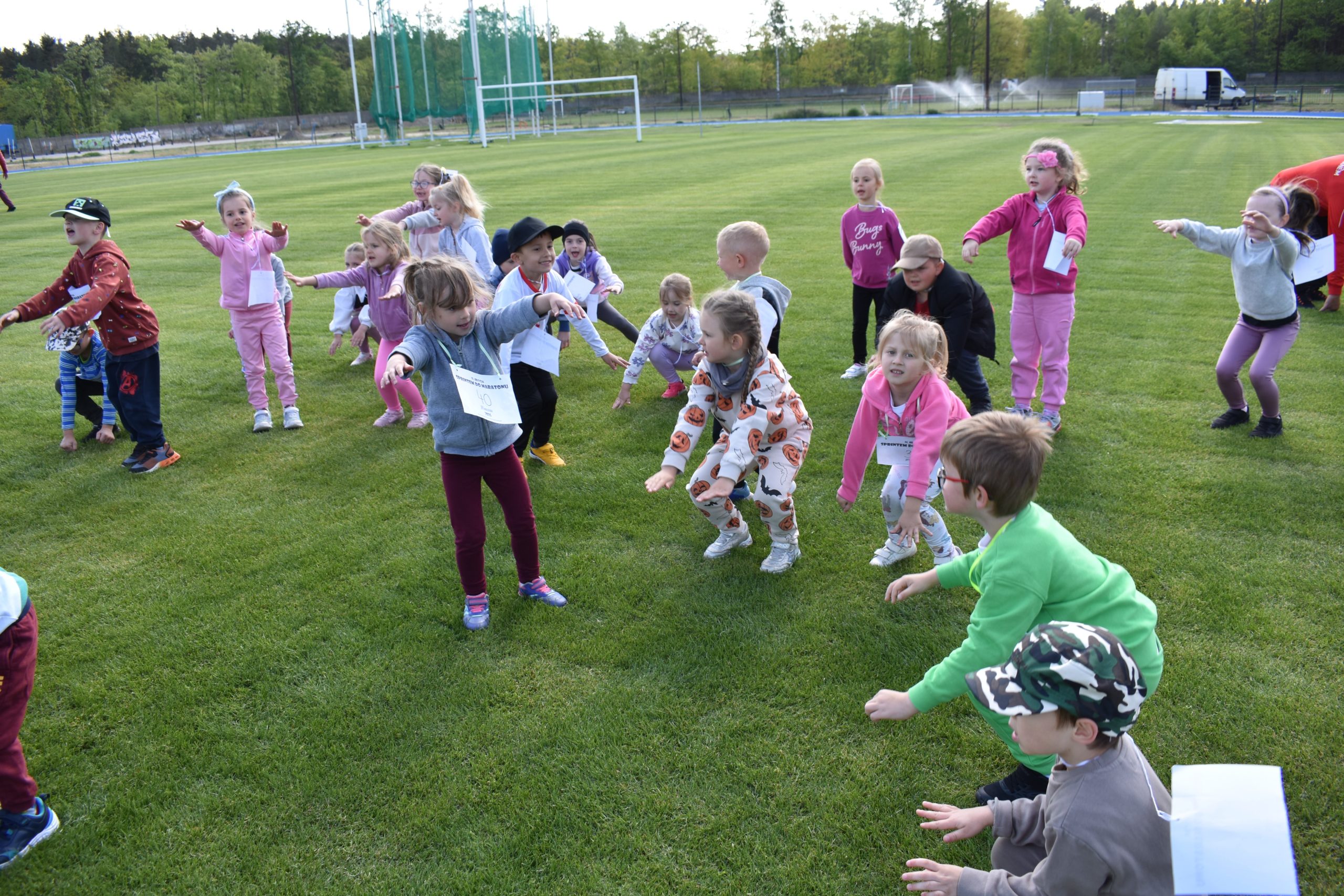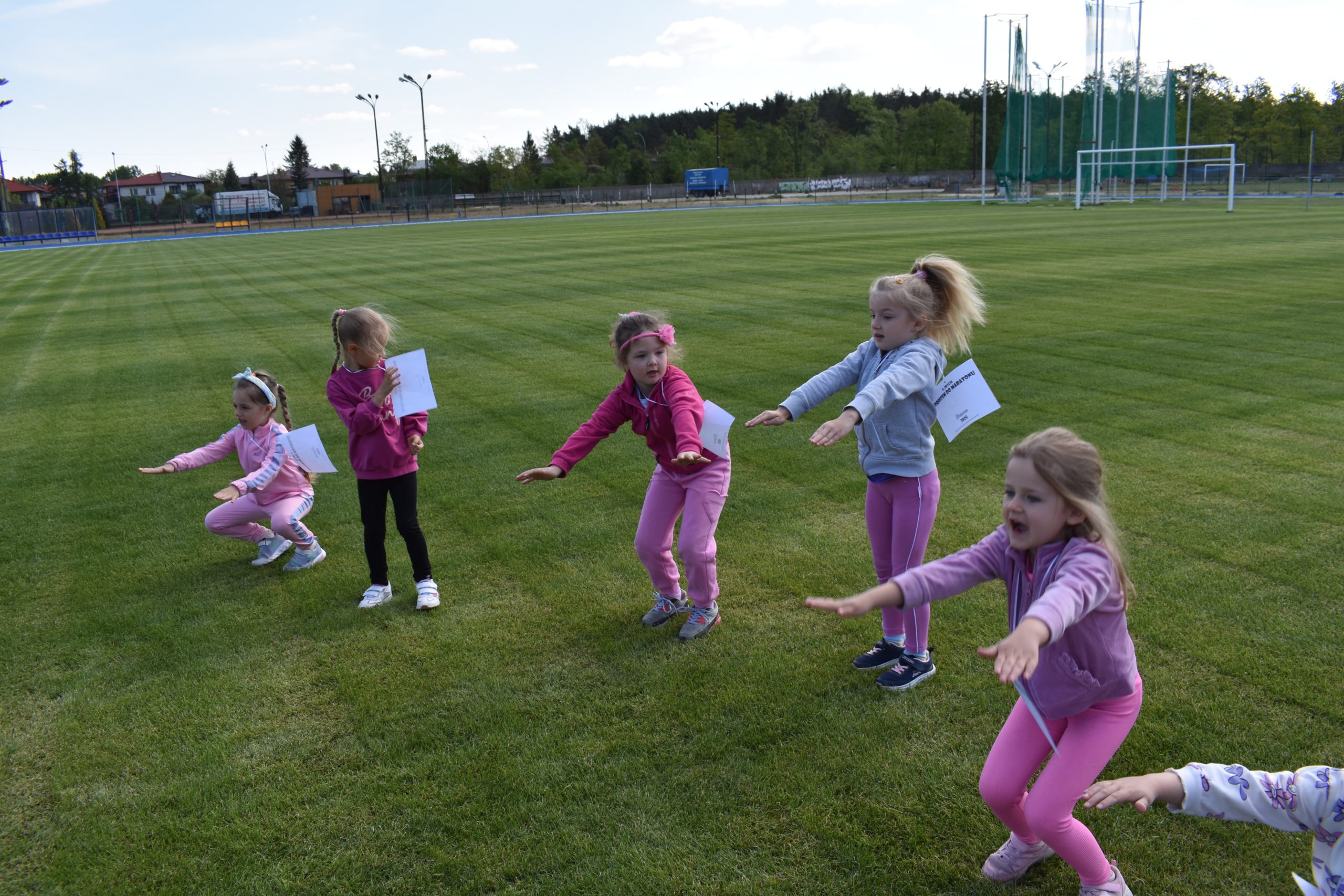 Na zaproszenie Panów trenerów z MOSiR w dniu dzisiejszym wybraliśmy się na stadion, aby wziąć udział w biegu pod hasłem „Sprintem do maratonu”. Naszą wizytę rozpoczęliśmy od rozgrzewki a następnie dzieci pełne energii ruszyły do biegu, pokonując wyznaczoną trasę. Celem wydarzenia jest promocja zdrowego stylu życia i aktywnego spędzania czasu, w tym czasu na świeżym powietrzu, popularyzowanie biegów wśród dzieci oraz kształtowanie u przedszkolaków nawyku podejmowania aktywności fizycznej w dorosłym życiu. Panom trenerom dziękujemy za zorganizowanie biegu i gratulujemy wszystkim uczestnikom maratonu, zawsze pamiętając, że sport to zdrowie!
