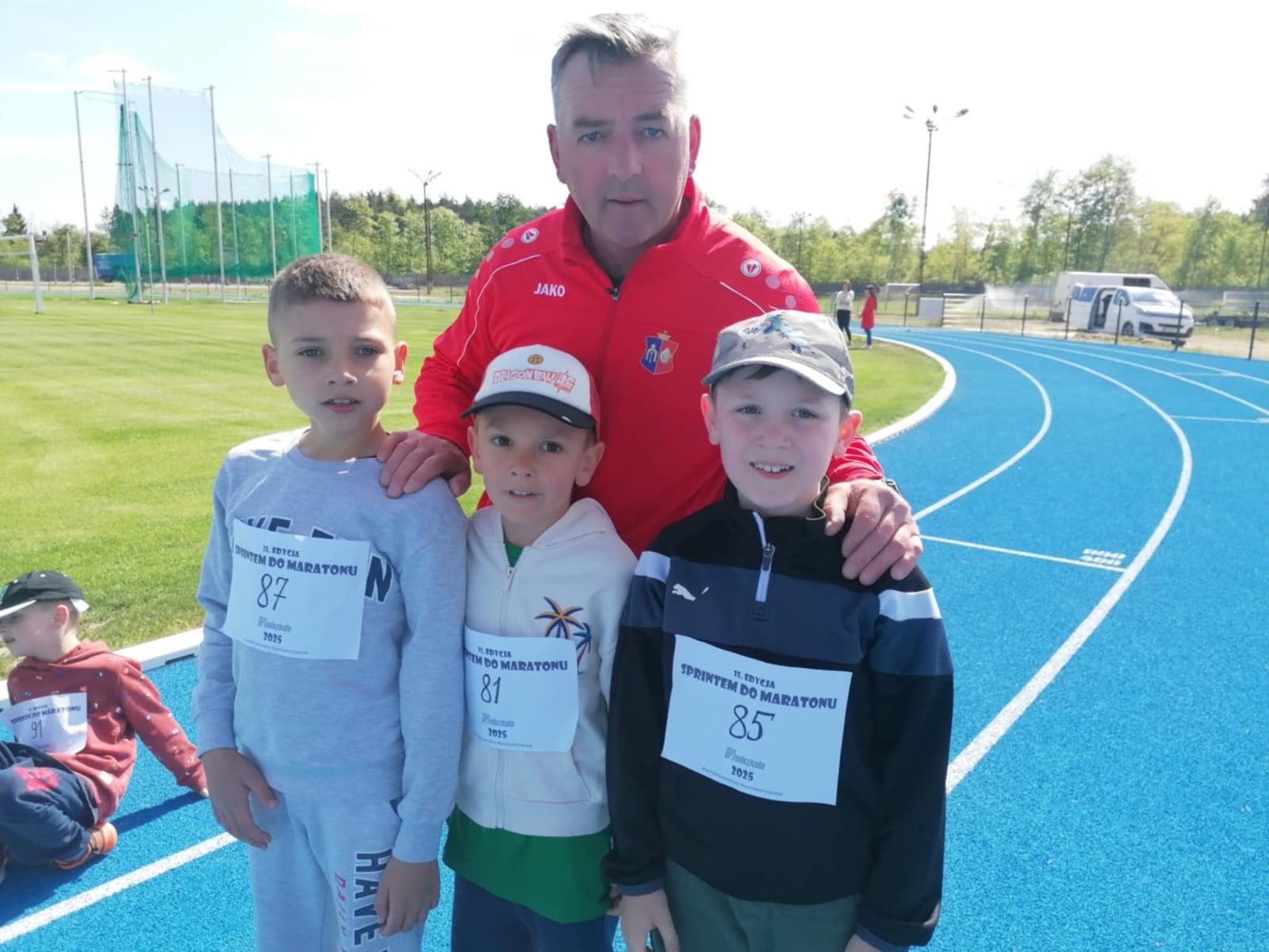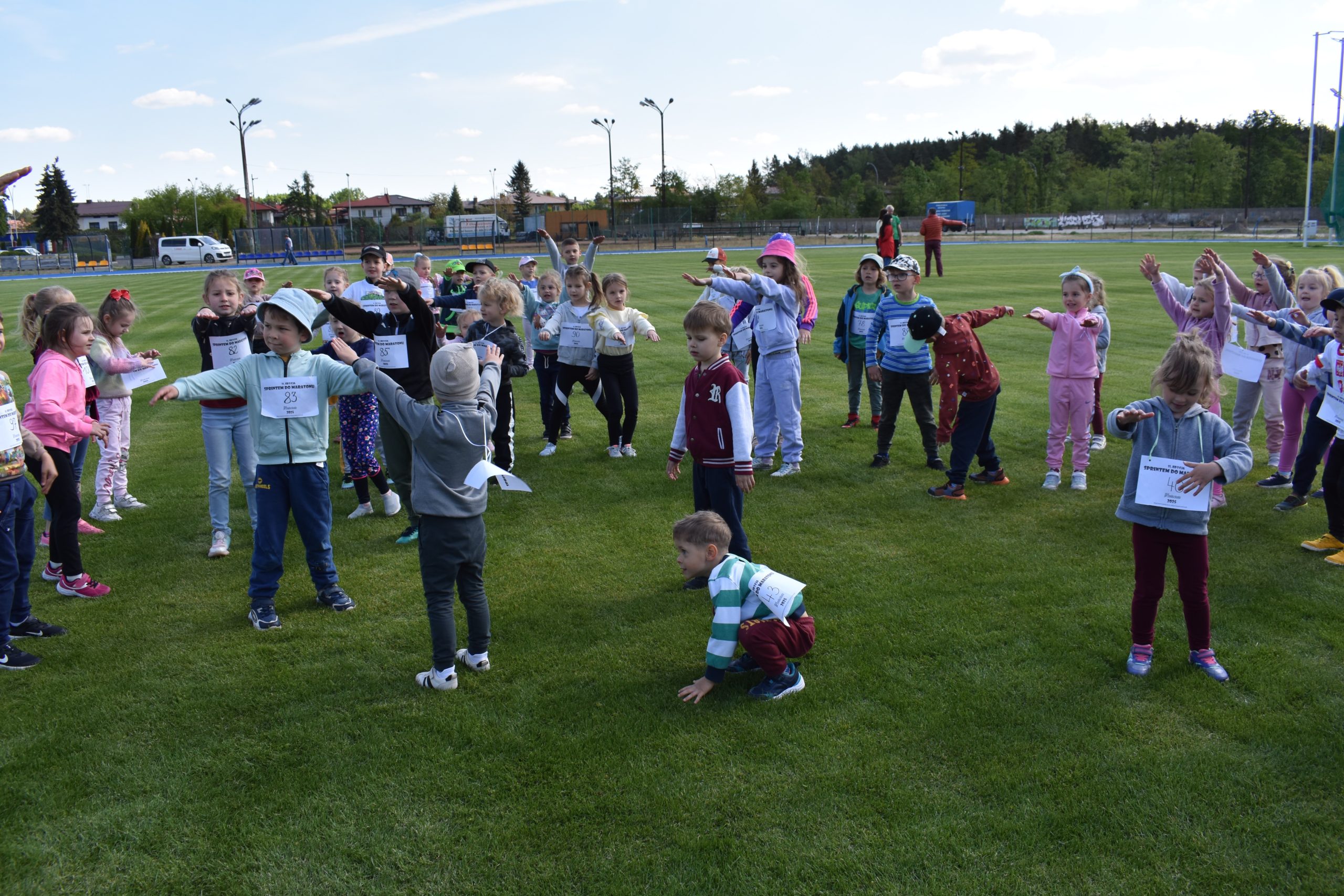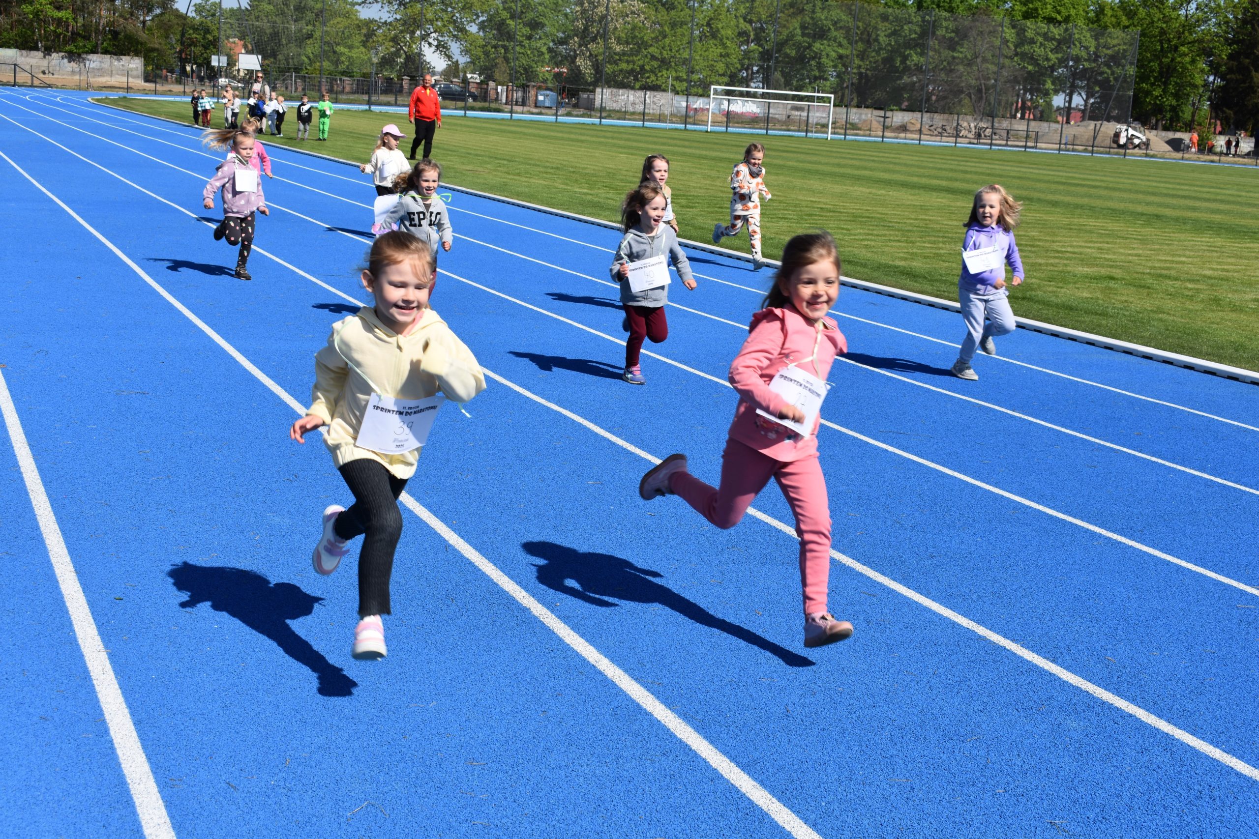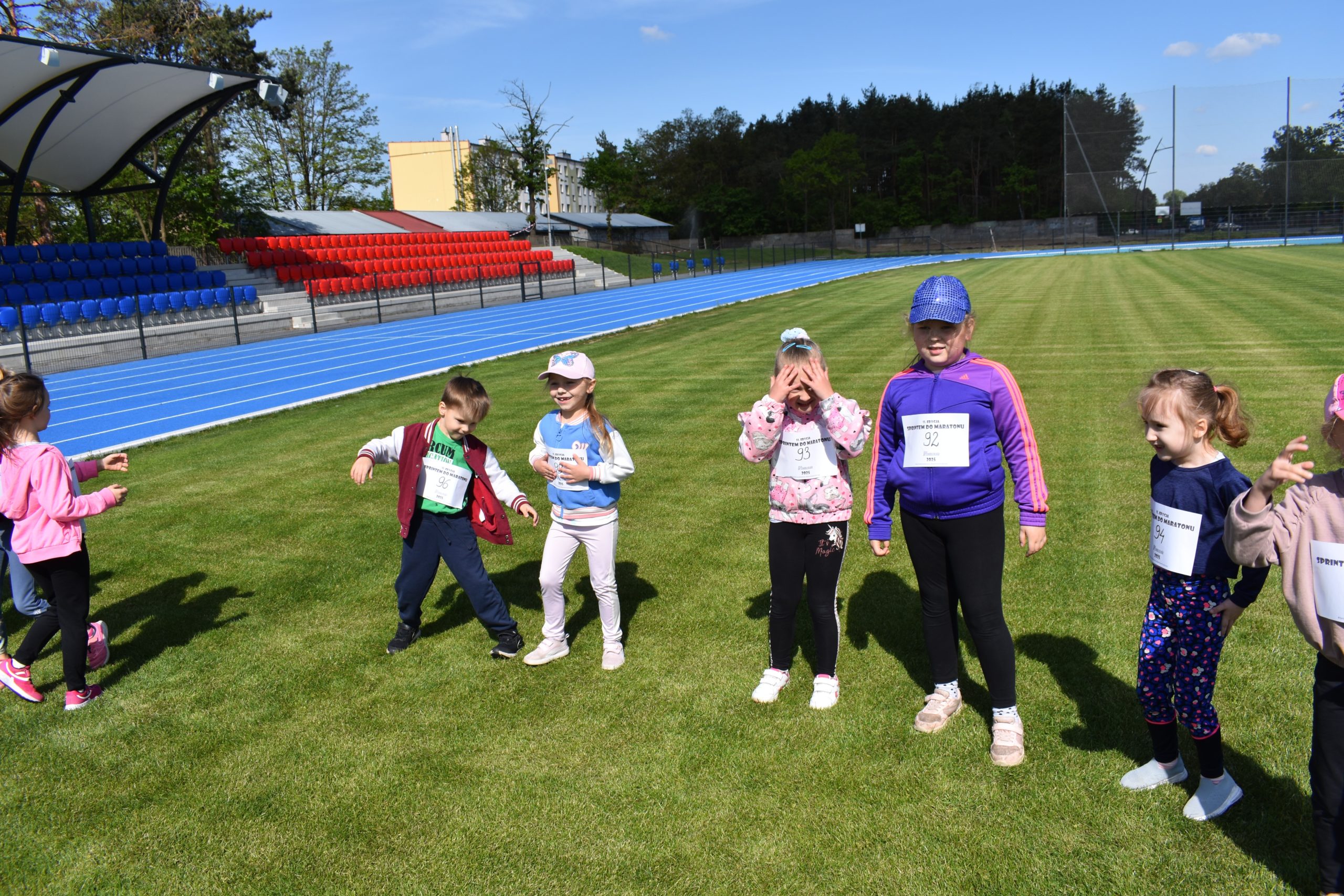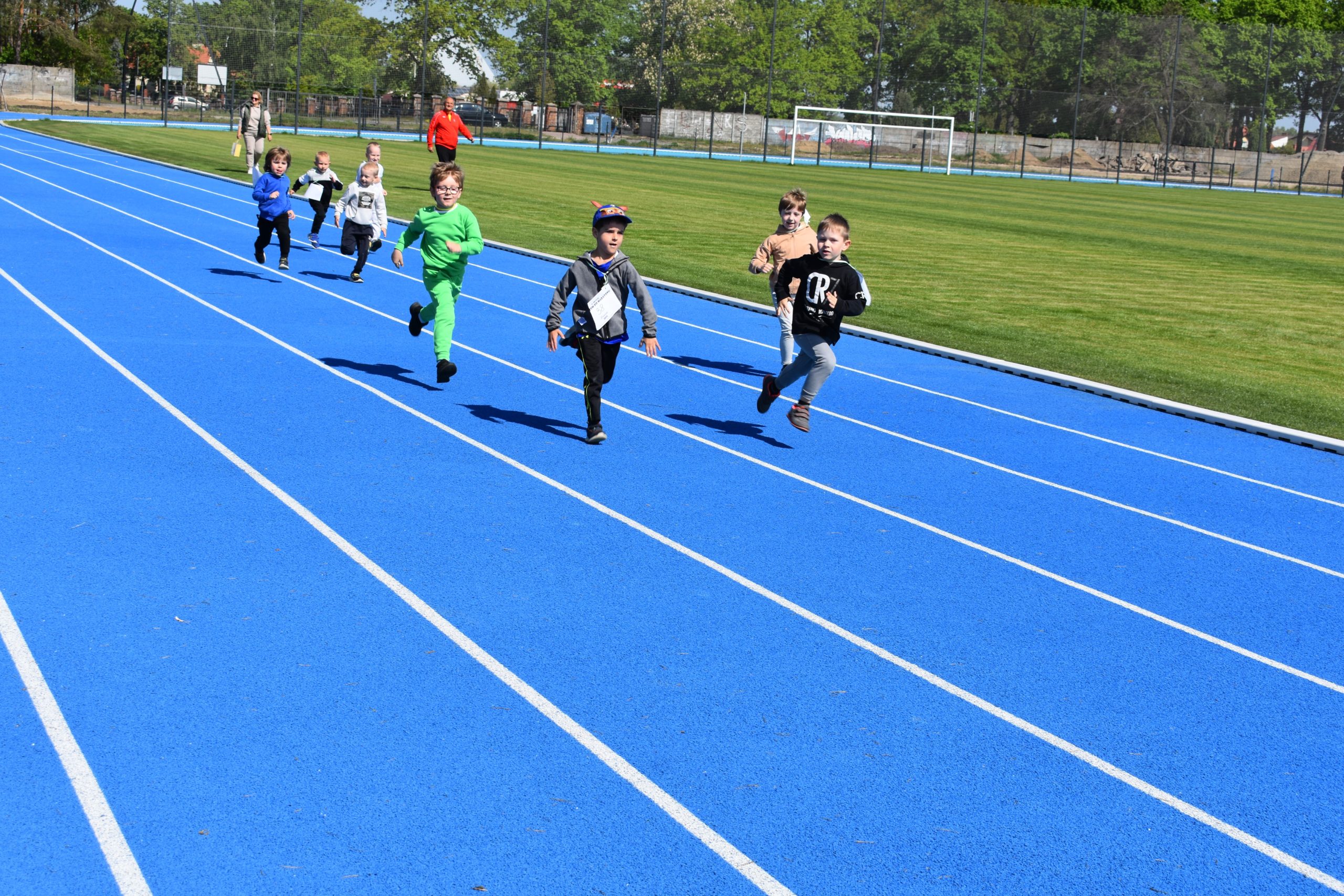 Na zaproszenie Panów trenerów z MOSiR w dniu dzisiejszym wybraliśmy się na stadion, aby wziąć udział w biegu pod hasłem „Sprintem do maratonu”. Naszą wizytę rozpoczęliśmy od rozgrzewki a następnie dzieci pełne energii ruszyły do biegu, pokonując wyznaczoną trasę. Celem wydarzenia jest promocja zdrowego stylu życia i aktywnego spędzania czasu, w tym czasu na świeżym powietrzu, popularyzowanie biegów wśród dzieci oraz kształtowanie u przedszkolaków nawyku podejmowania aktywności fizycznej w dorosłym życiu. Panom trenerom dziękujemy za zorganizowanie biegu i gratulujemy wszystkim uczestnikom maratonu, zawsze pamiętając, że sport to zdrowie!