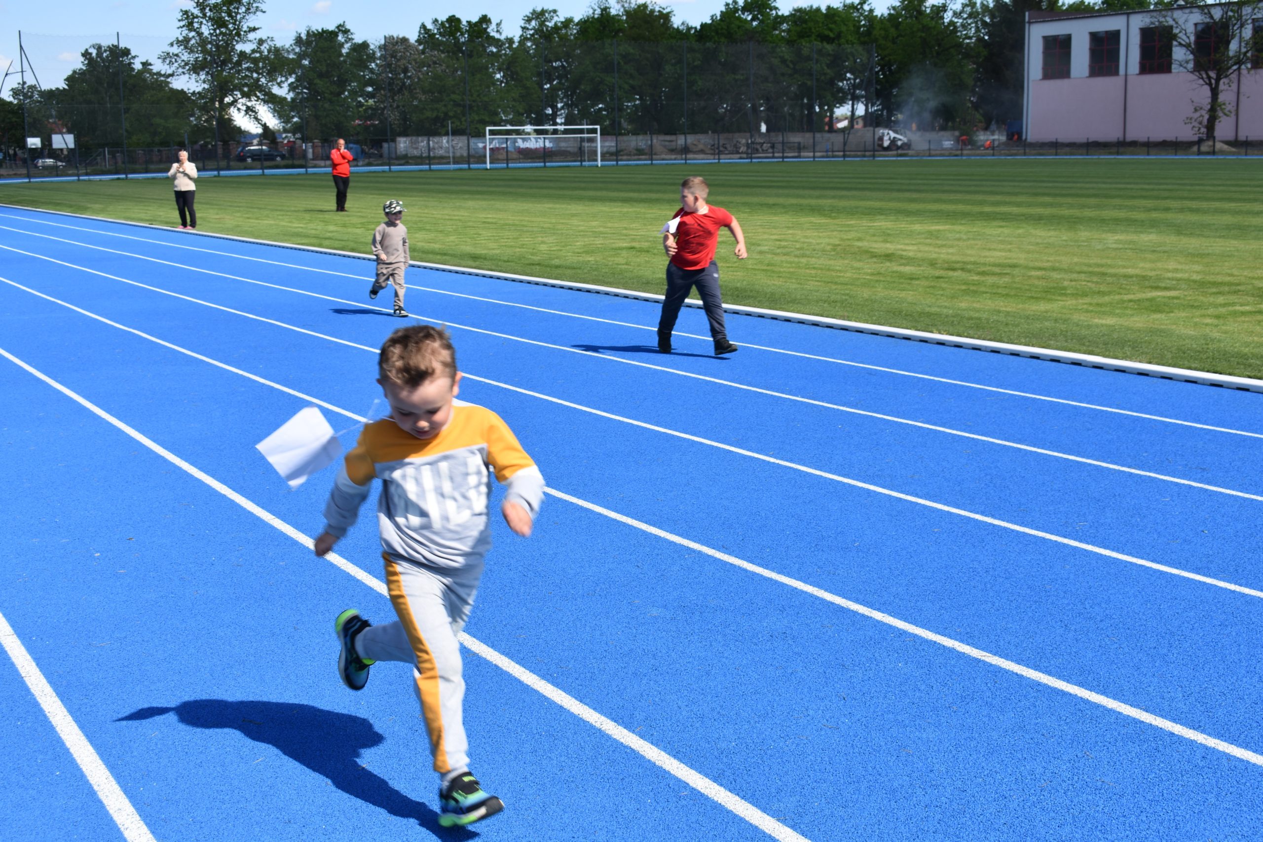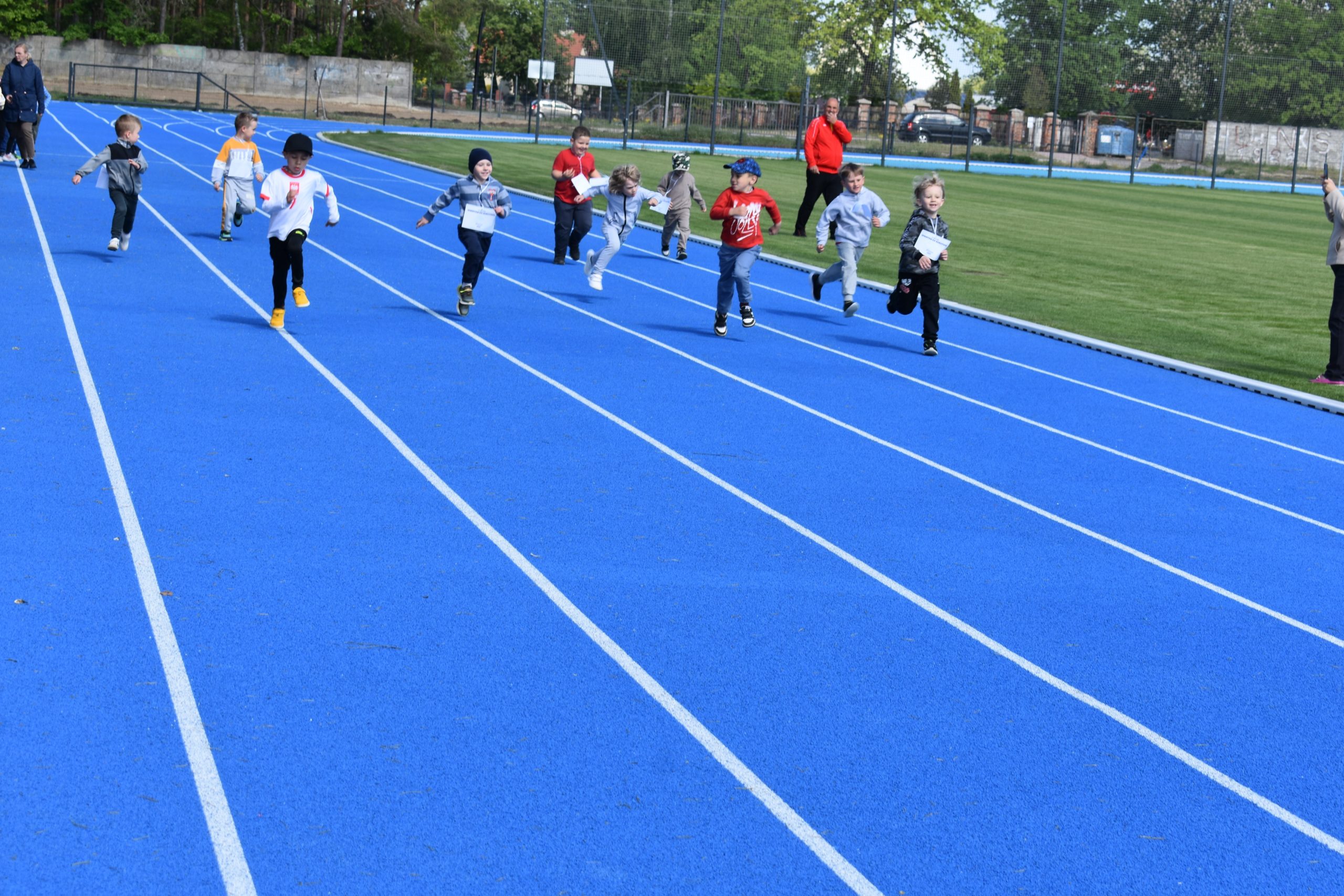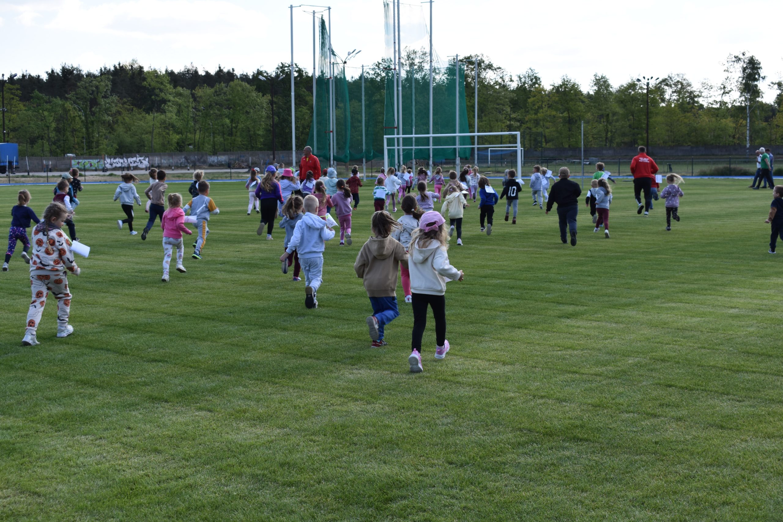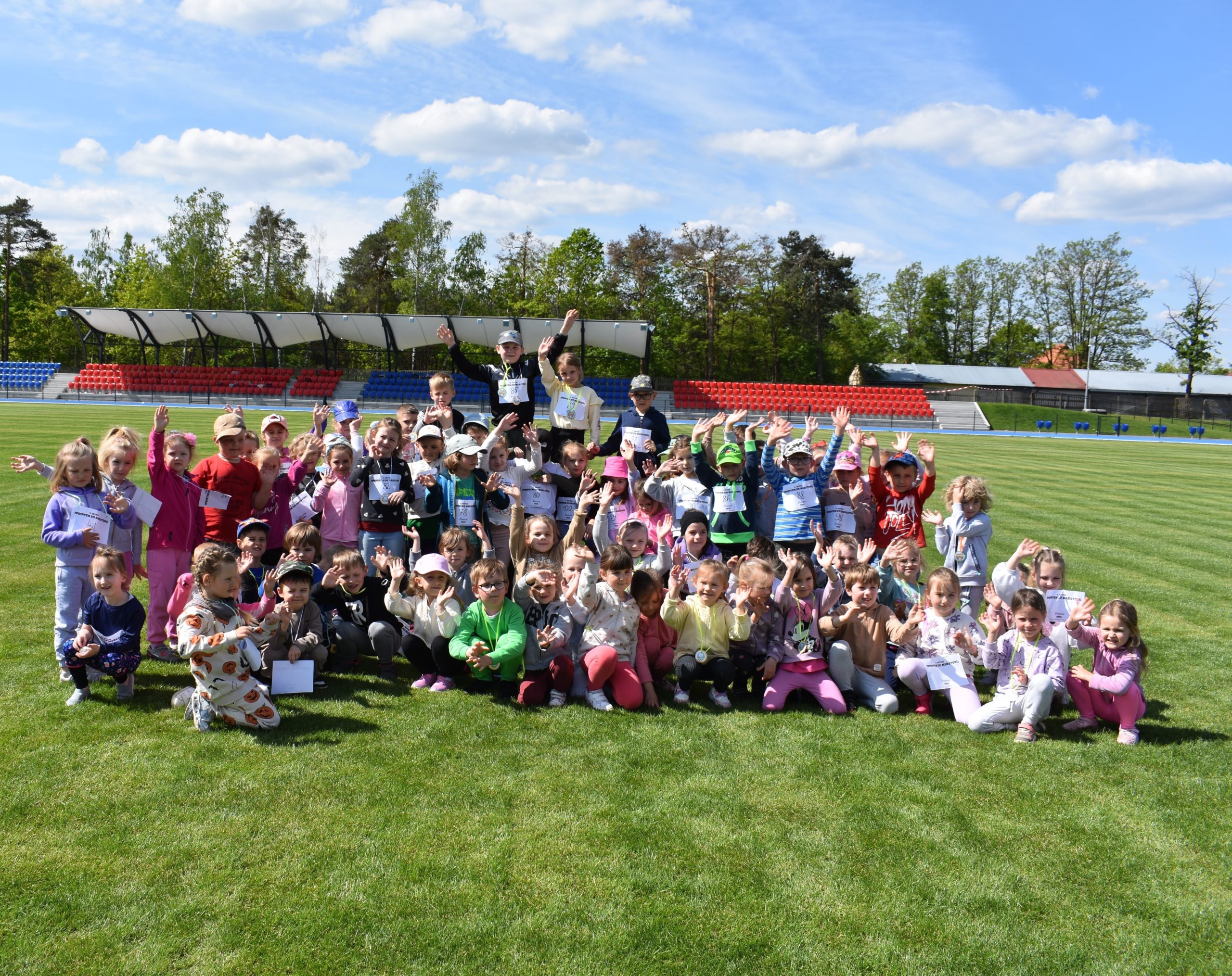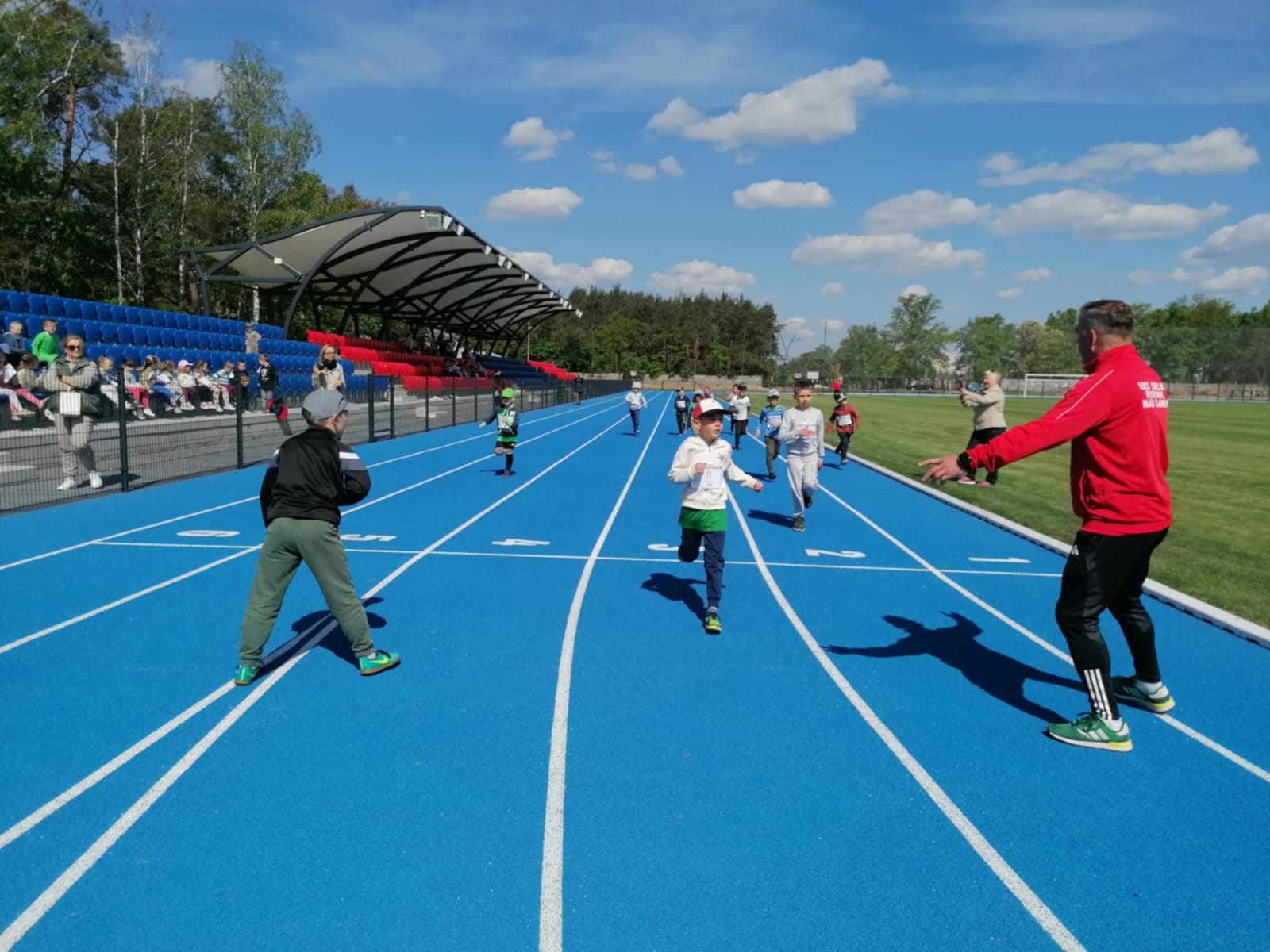 Na zaproszenie Panów trenerów z MOSiR w dniu dzisiejszym wybraliśmy się na stadion, aby wziąć udział w biegu pod hasłem „Sprintem do maratonu”. Naszą wizytę rozpoczęliśmy od rozgrzewki a następnie dzieci pełne energii ruszyły do biegu, pokonując wyznaczoną trasę. Celem wydarzenia jest promocja zdrowego stylu życia i aktywnego spędzania czasu, w tym czasu na świeżym powietrzu, popularyzowanie biegów wśród dzieci oraz kształtowanie u przedszkolaków nawyku podejmowania aktywności fizycznej w dorosłym życiu. Panom trenerom dziękujemy za zorganizowanie biegu i gratulujemy wszystkim uczestnikom maratonu, zawsze pamiętając, że sport to zdrowie!