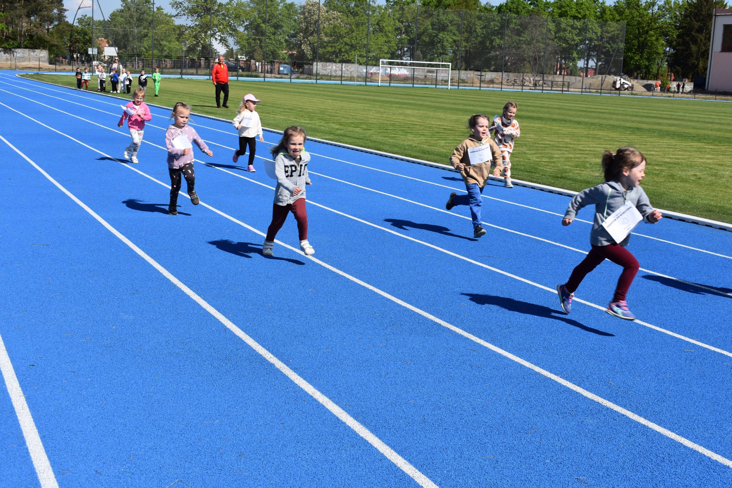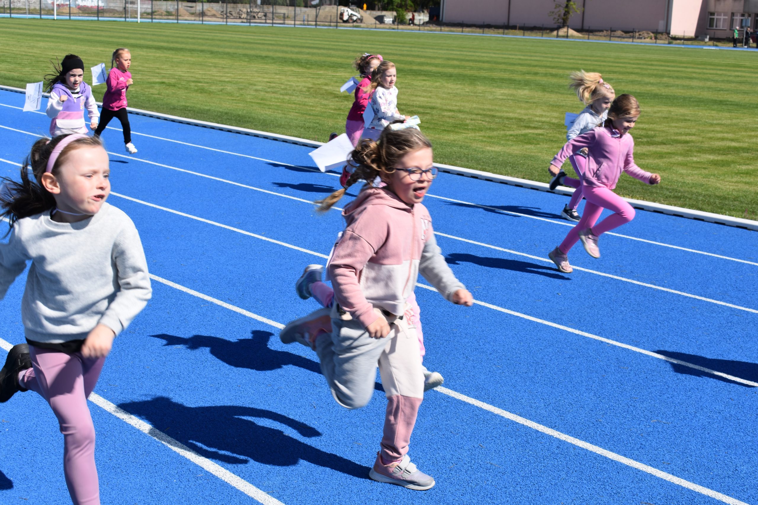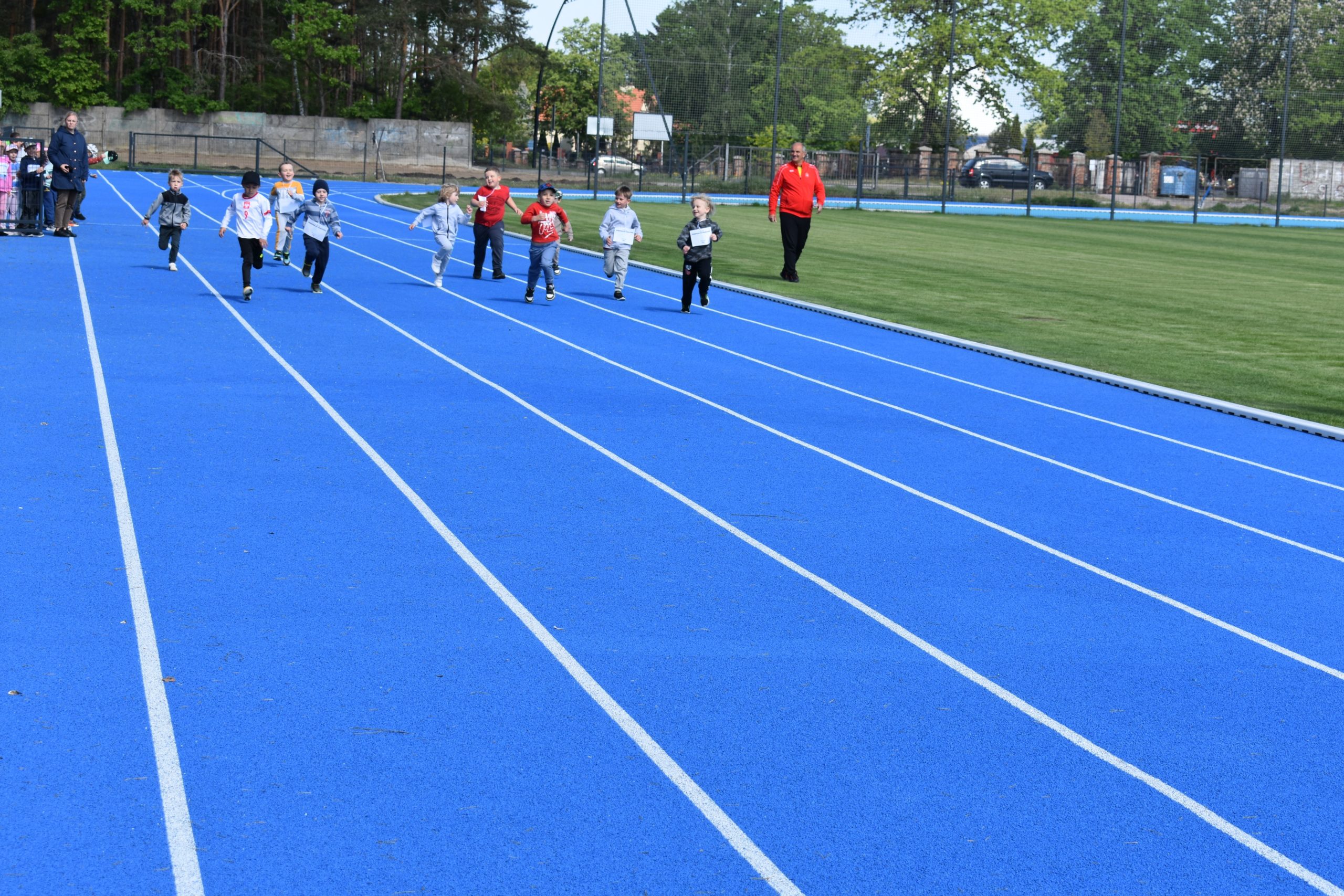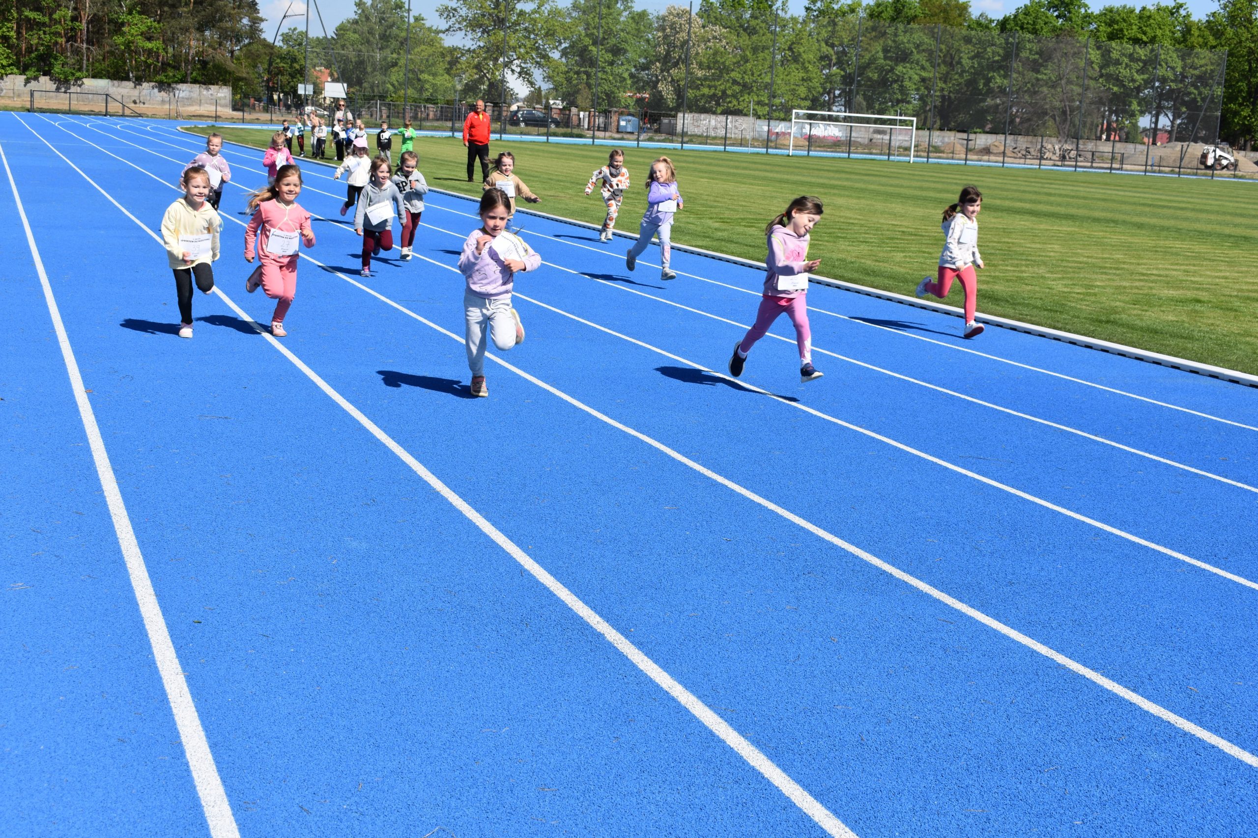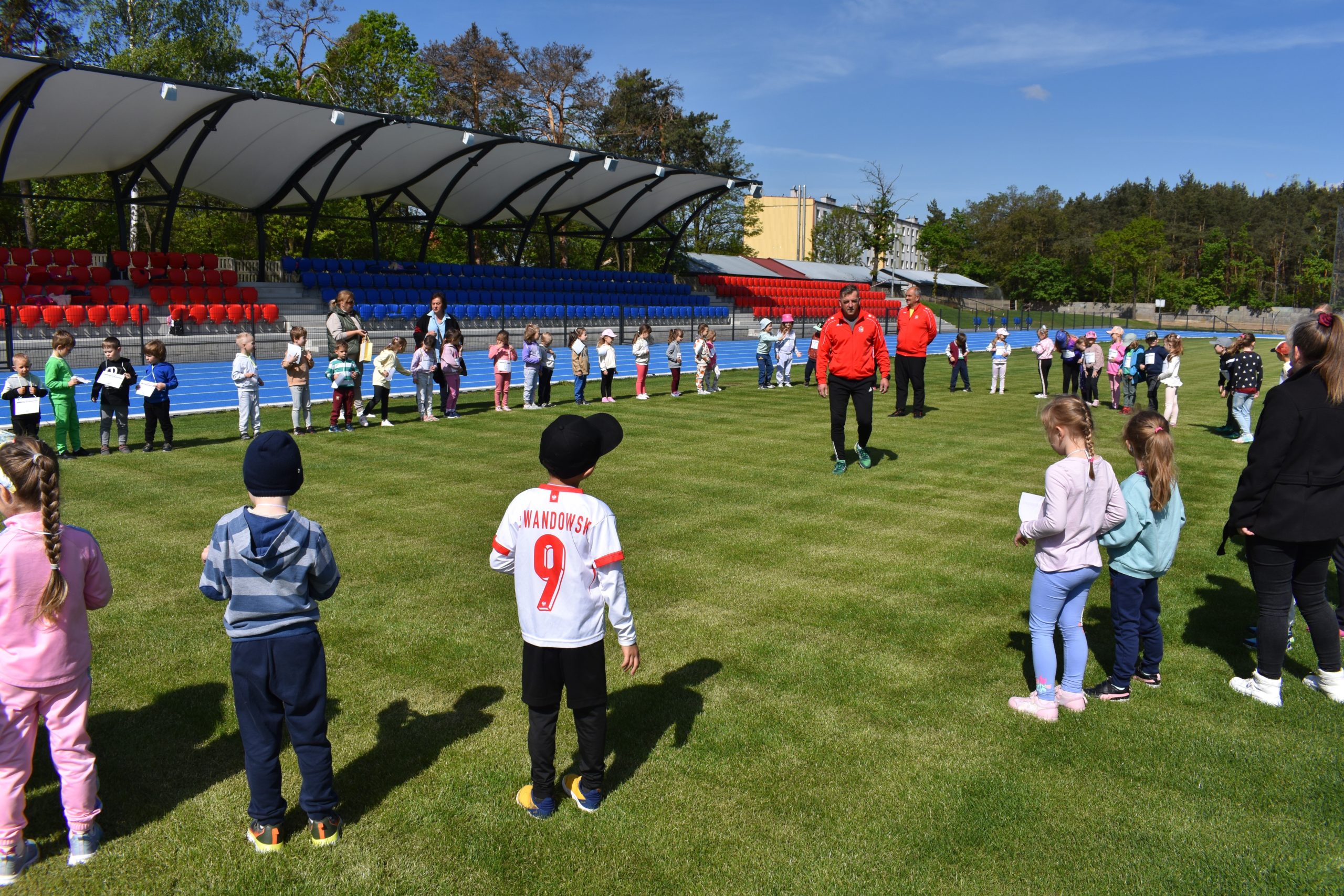 Na zaproszenie Panów trenerów z MOSiR w dniu dzisiejszym wybraliśmy się na stadion, aby wziąć udział w biegu pod hasłem „Sprintem do maratonu”. Naszą wizytę rozpoczęliśmy od rozgrzewki a następnie dzieci pełne energii ruszyły do biegu, pokonując wyznaczoną trasę. Celem wydarzenia jest promocja zdrowego stylu życia i aktywnego spędzania czasu, w tym czasu na świeżym powietrzu, popularyzowanie biegów wśród dzieci oraz kształtowanie u przedszkolaków nawyku podejmowania aktywności fizycznej w dorosłym życiu. Panom trenerom dziękujemy za zorganizowanie biegu i gratulujemy wszystkim uczestnikom maratonu, zawsze pamiętając, że sport to zdrowie!