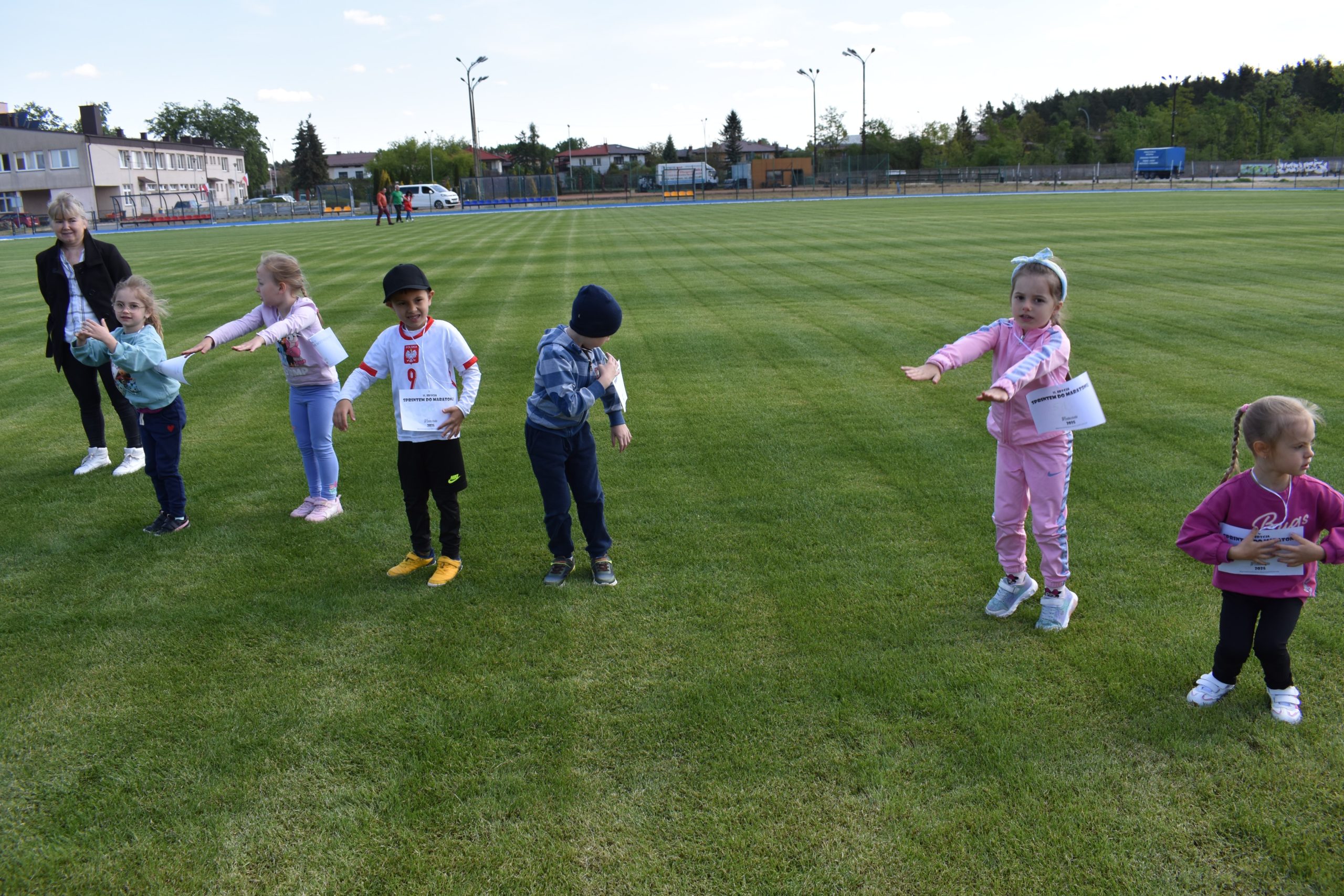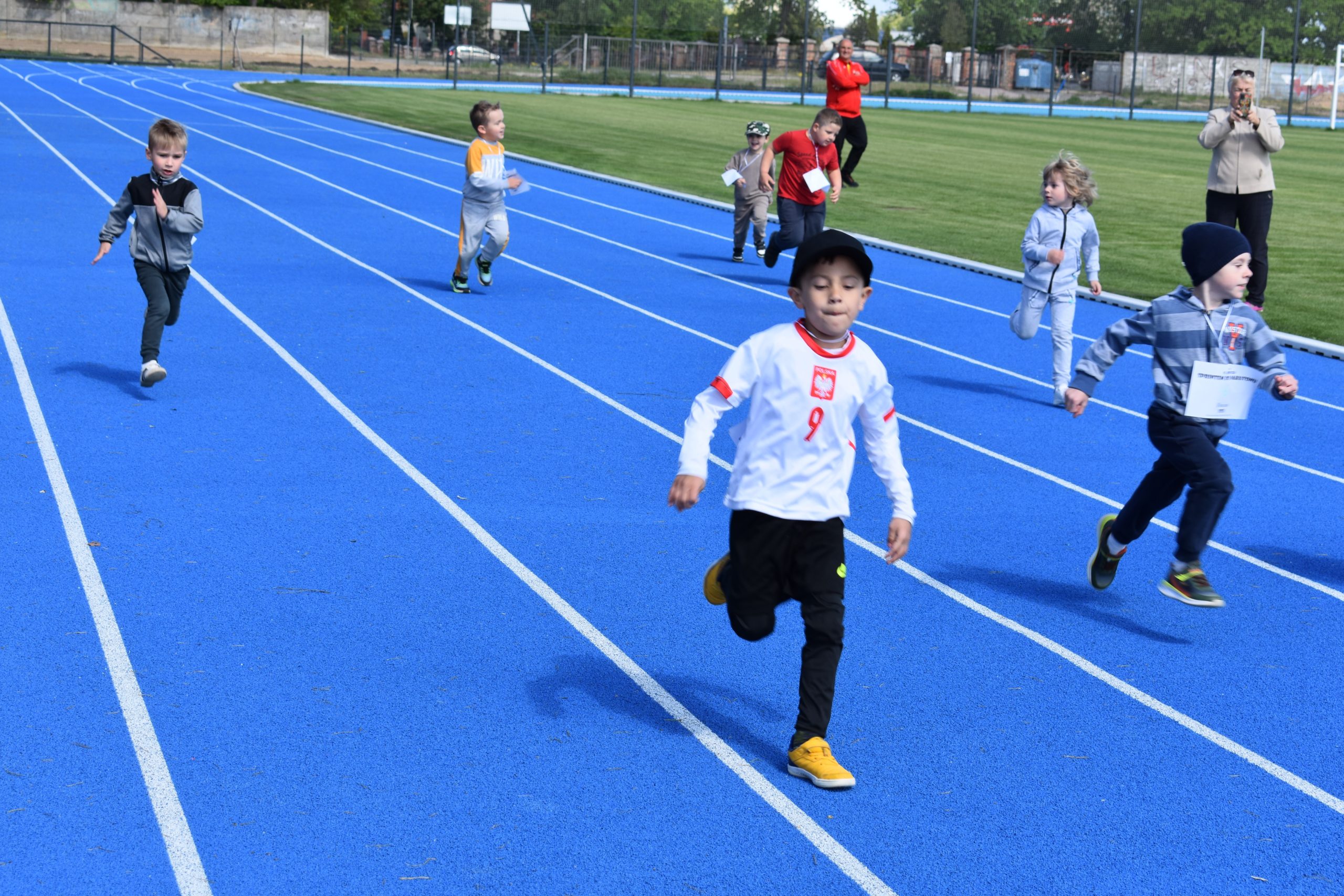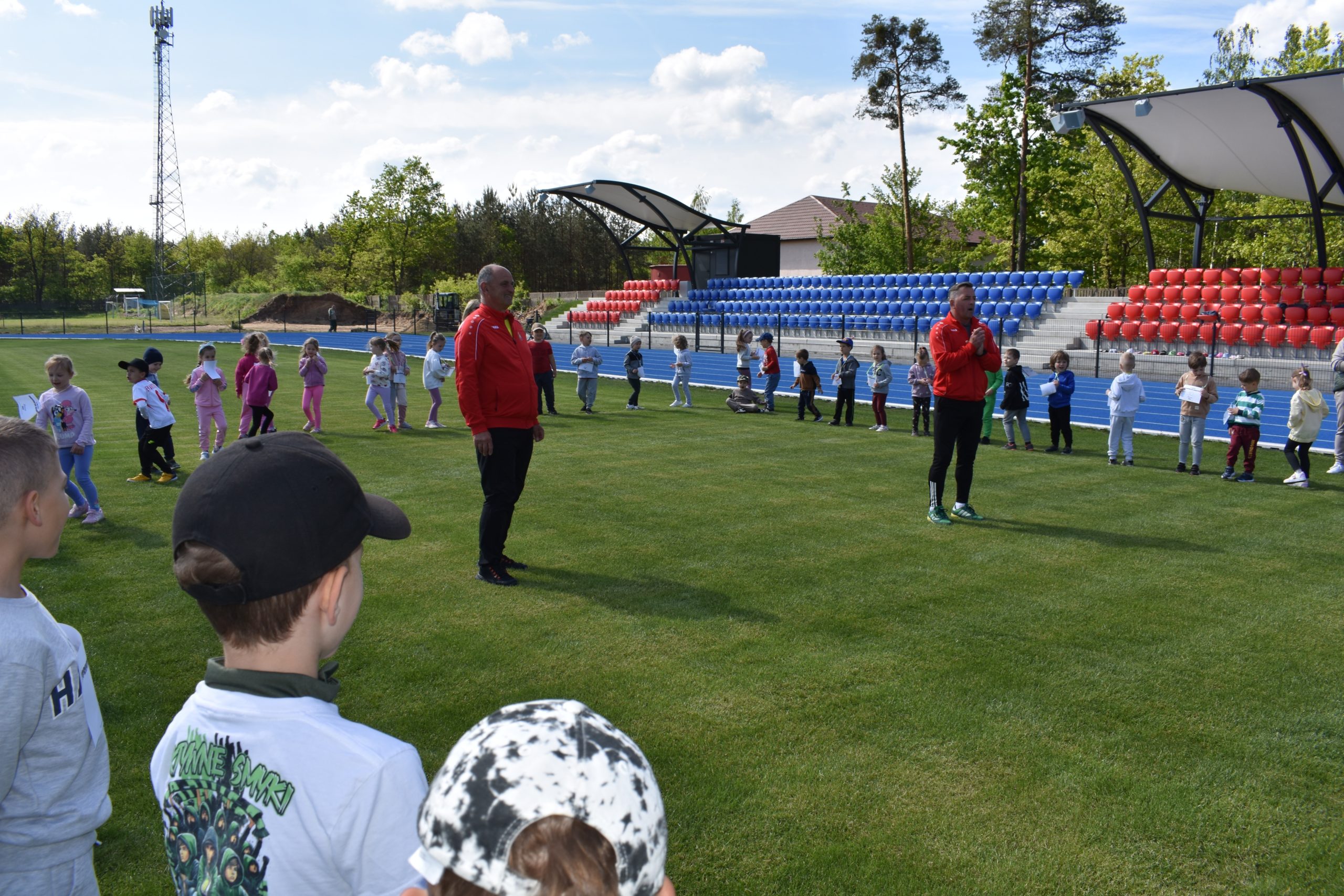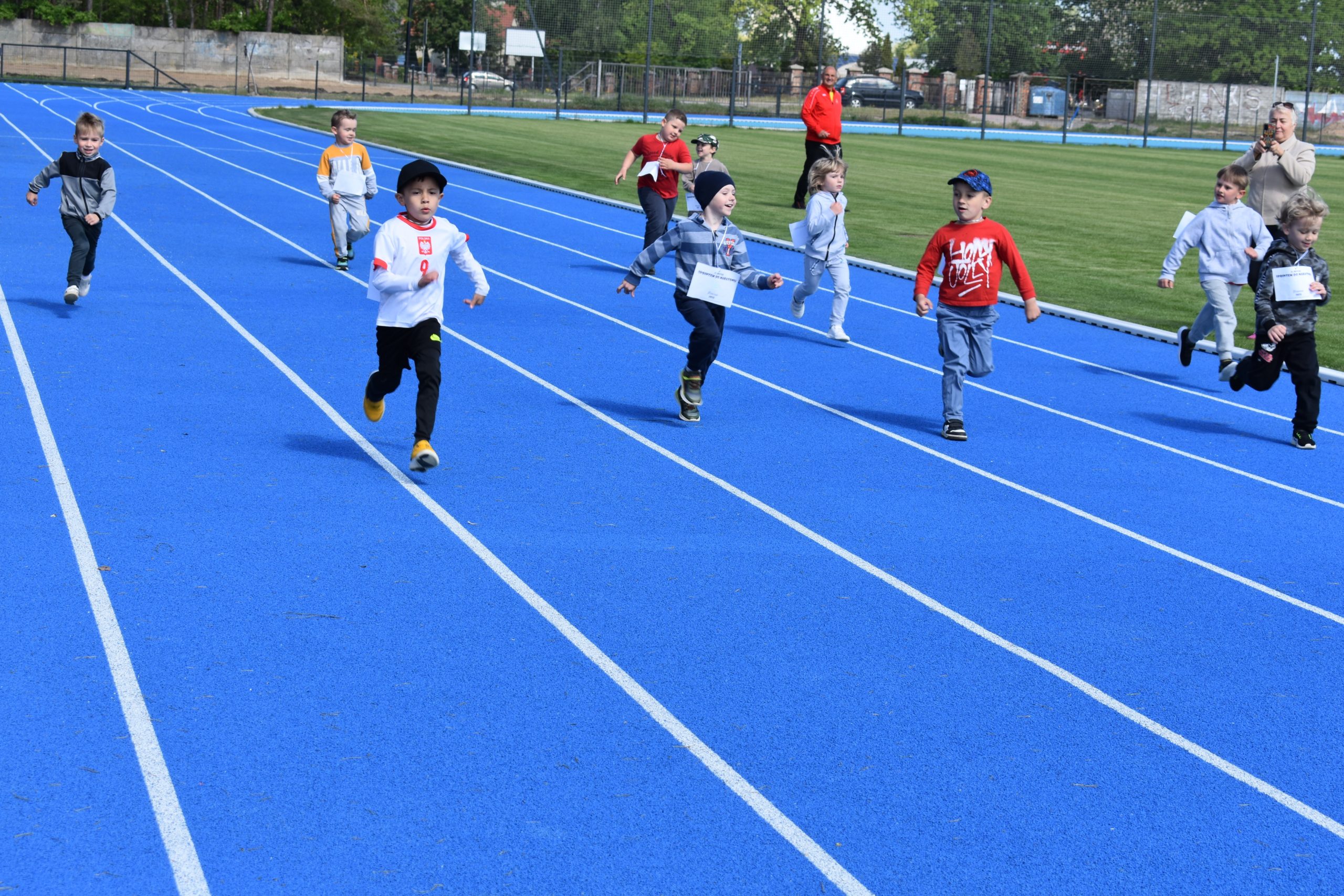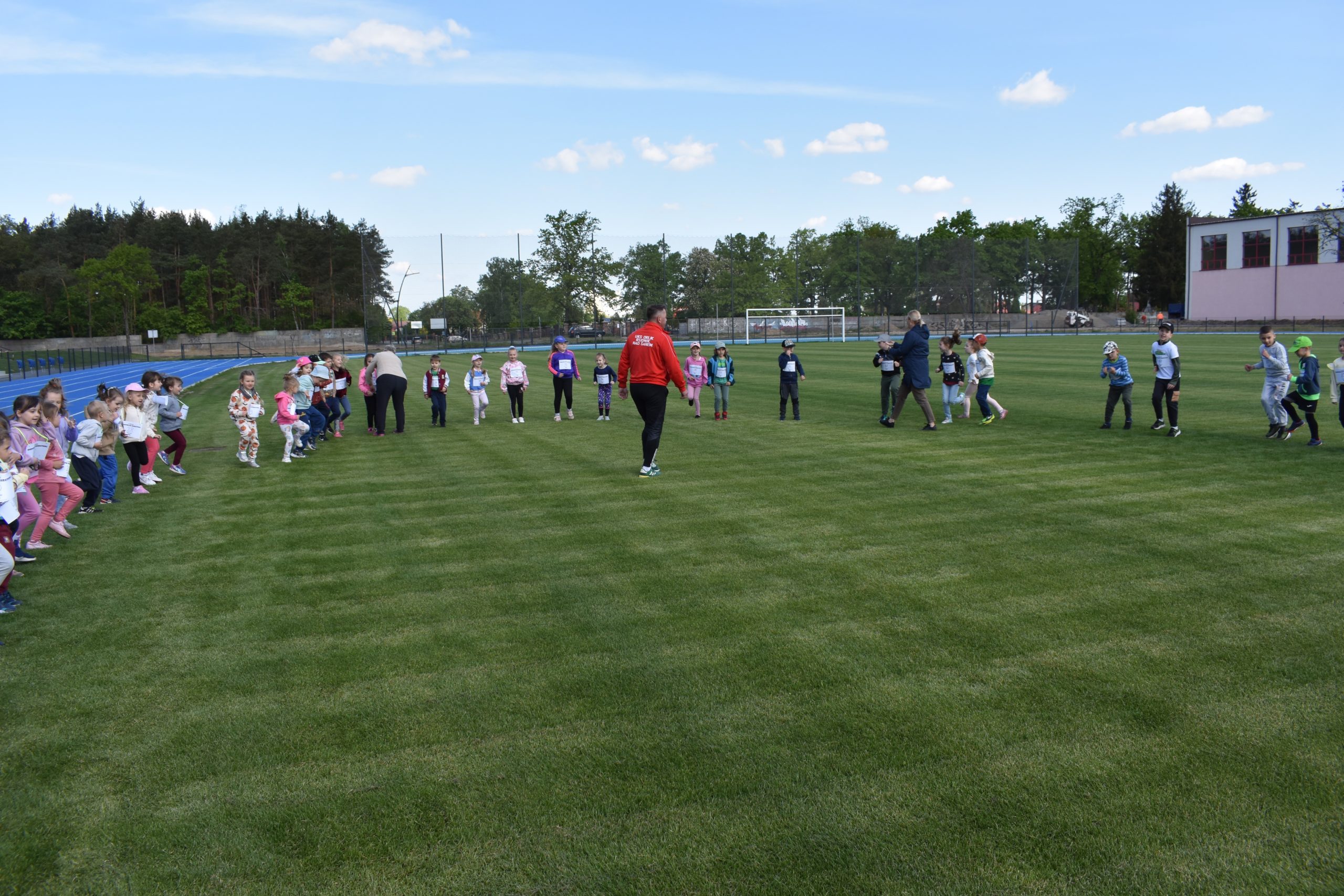 Na zaproszenie Panów trenerów z MOSiR w dniu dzisiejszym wybraliśmy się na stadion, aby wziąć udział w biegu pod hasłem „Sprintem do maratonu”. Naszą wizytę rozpoczęliśmy od rozgrzewki a następnie dzieci pełne energii ruszyły do biegu, pokonując wyznaczoną trasę. Celem wydarzenia jest promocja zdrowego stylu życia i aktywnego spędzania czasu, w tym czasu na świeżym powietrzu, popularyzowanie biegów wśród dzieci oraz kształtowanie u przedszkolaków nawyku podejmowania aktywności fizycznej w dorosłym życiu. Panom trenerom dziękujemy za zorganizowanie biegu i gratulujemy wszystkim uczestnikom maratonu, zawsze pamiętając, że sport to zdrowie!