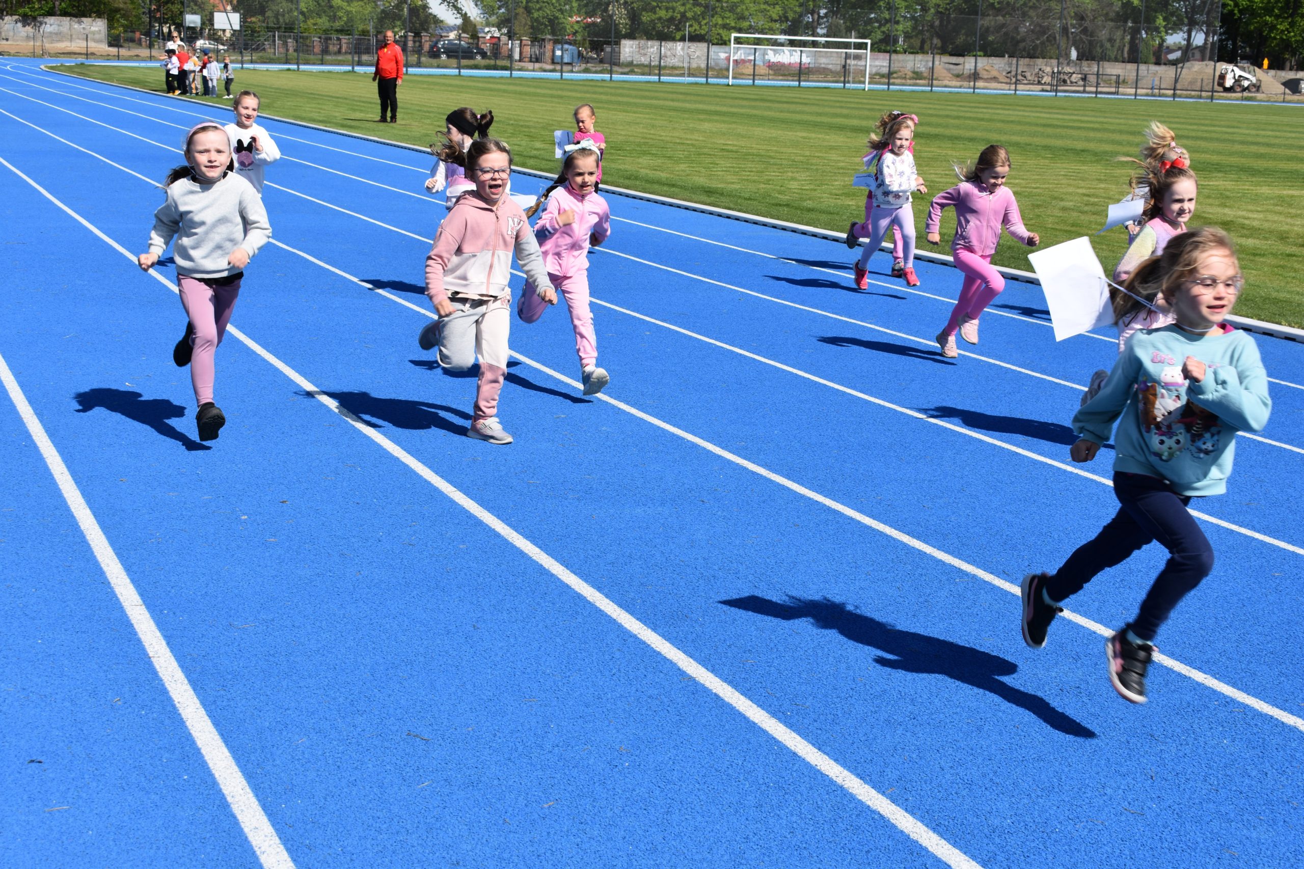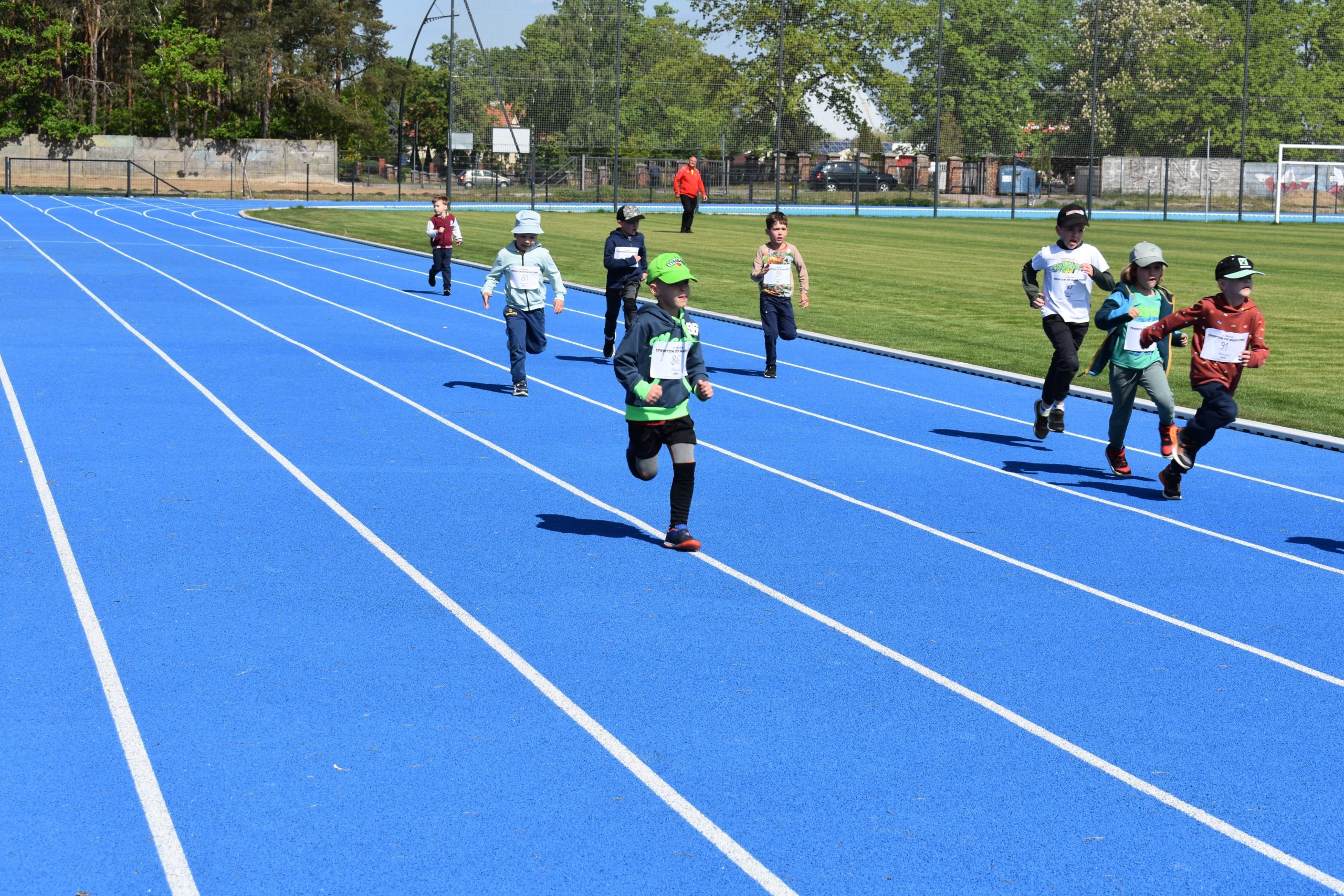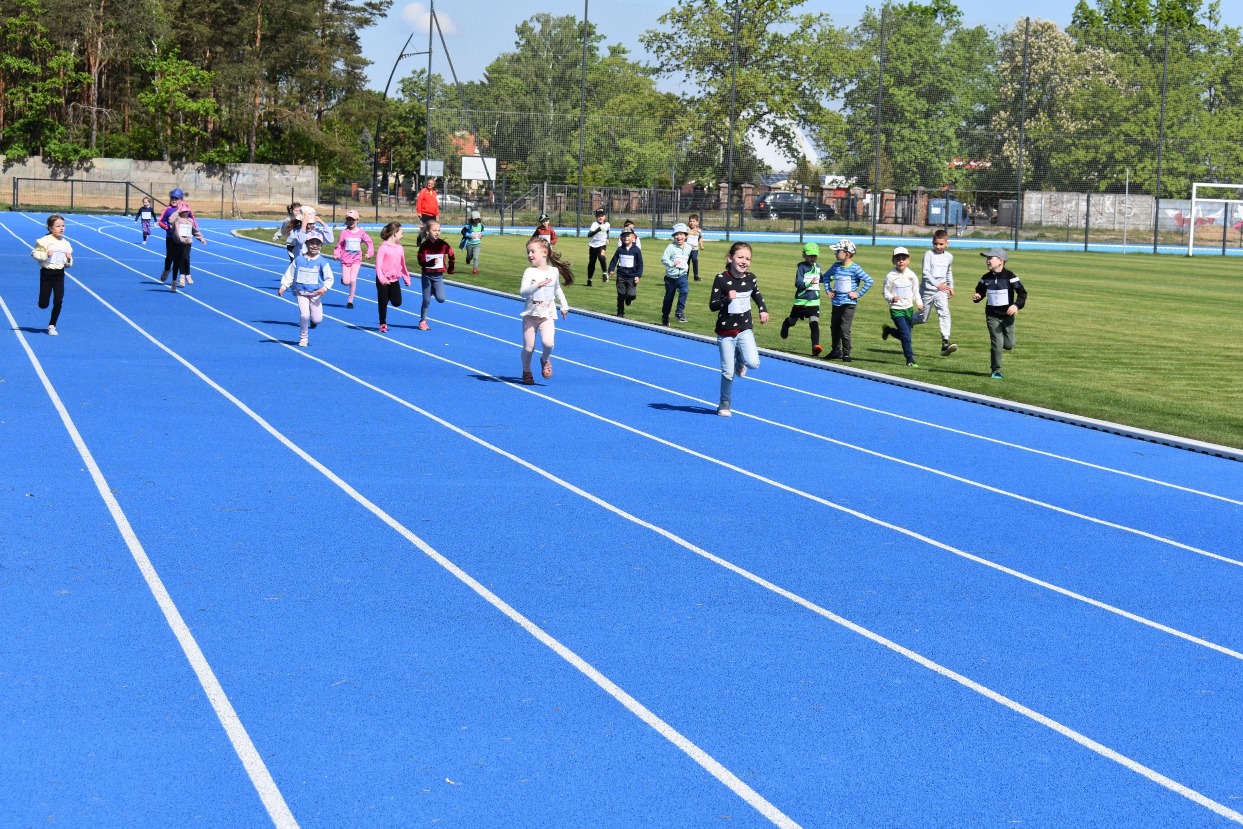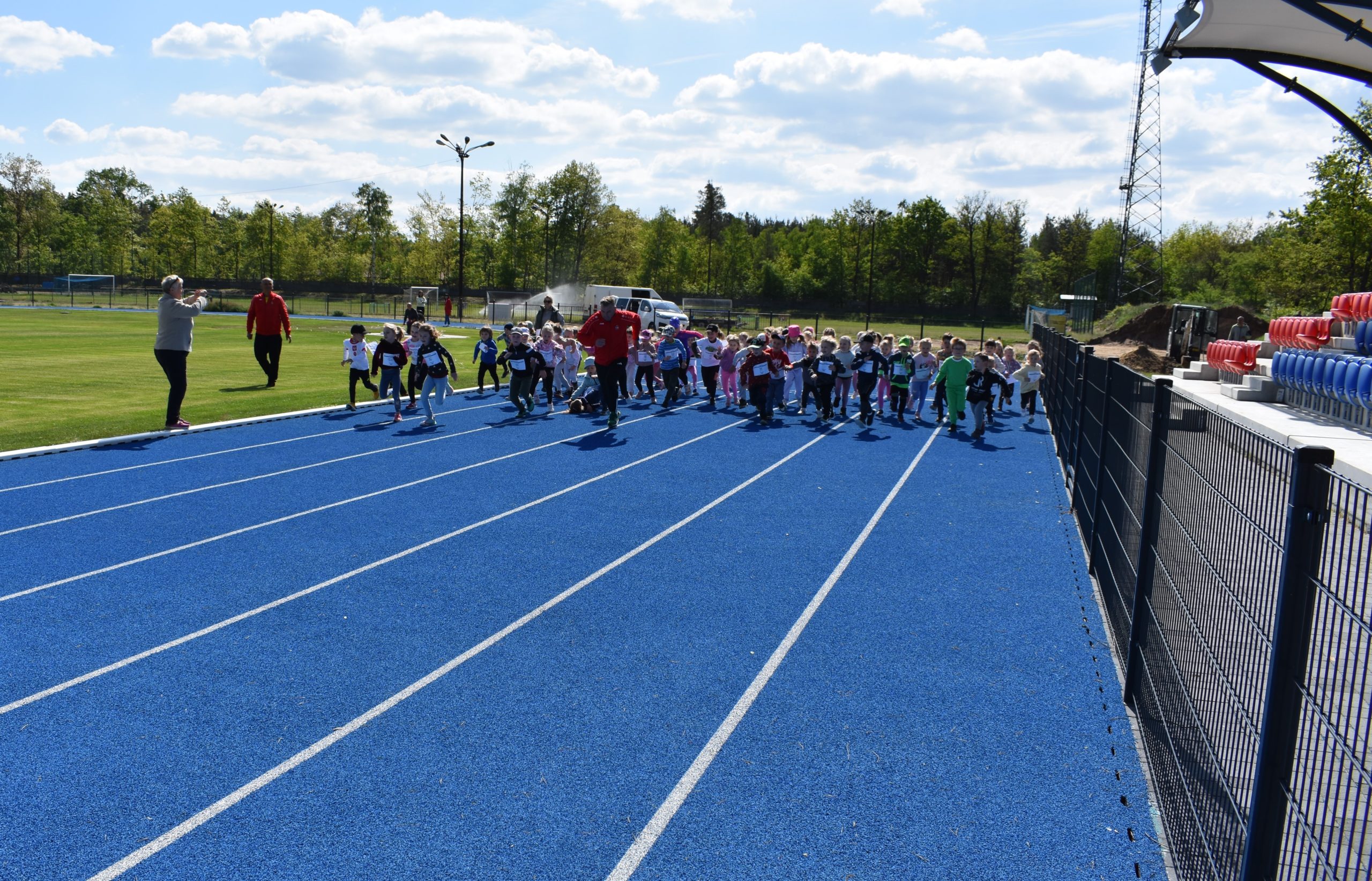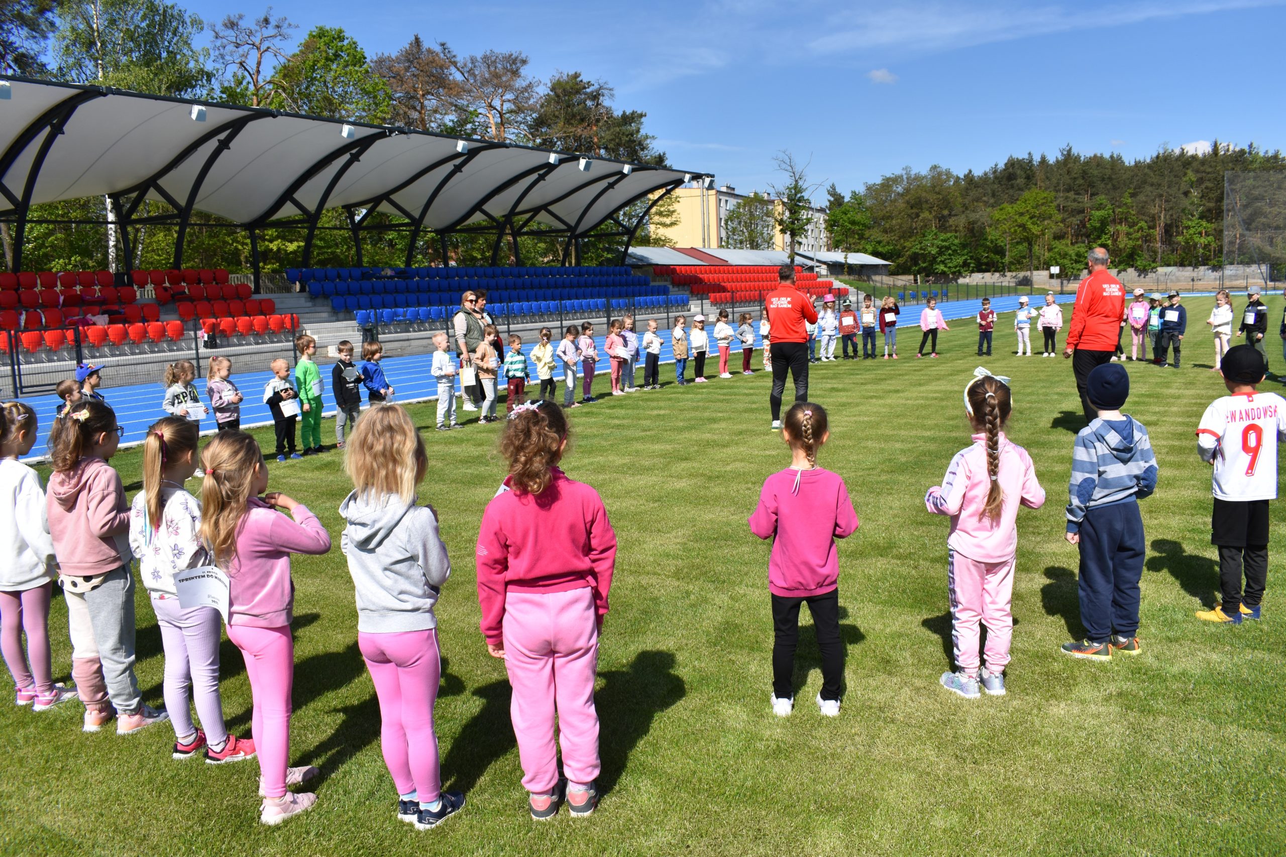 Na zaproszenie Panów trenerów z MOSiR w dniu dzisiejszym wybraliśmy się na stadion, aby wziąć udział w biegu pod hasłem „Sprintem do maratonu”. Naszą wizytę rozpoczęliśmy od rozgrzewki a następnie dzieci pełne energii ruszyły do biegu, pokonując wyznaczoną trasę. Celem wydarzenia jest promocja zdrowego stylu życia i aktywnego spędzania czasu, w tym czasu na świeżym powietrzu, popularyzowanie biegów wśród dzieci oraz kształtowanie u przedszkolaków nawyku podejmowania aktywności fizycznej w dorosłym życiu. Panom trenerom dziękujemy za zorganizowanie biegu i gratulujemy wszystkim uczestnikom maratonu, zawsze pamiętając, że sport to zdrowie!