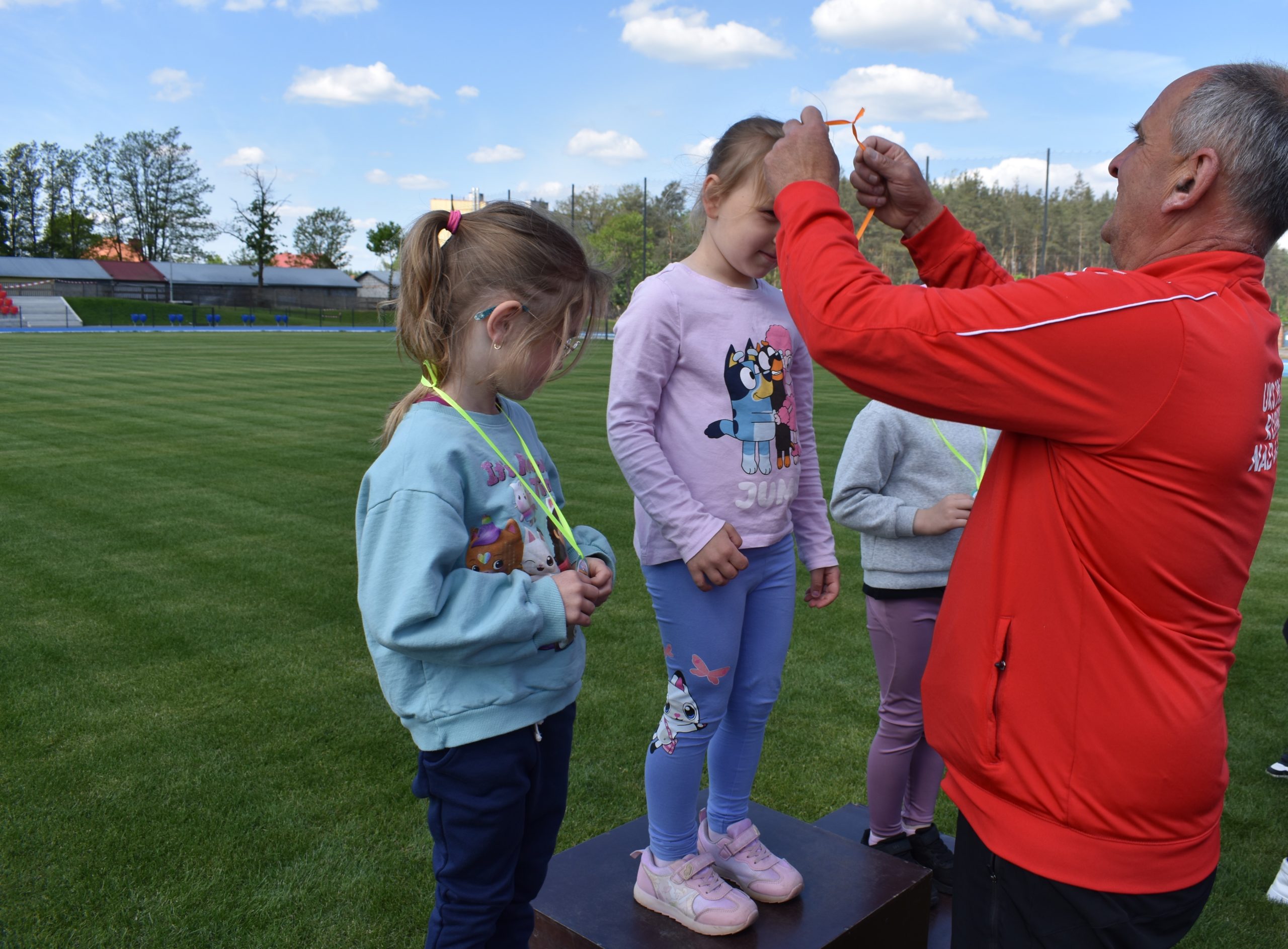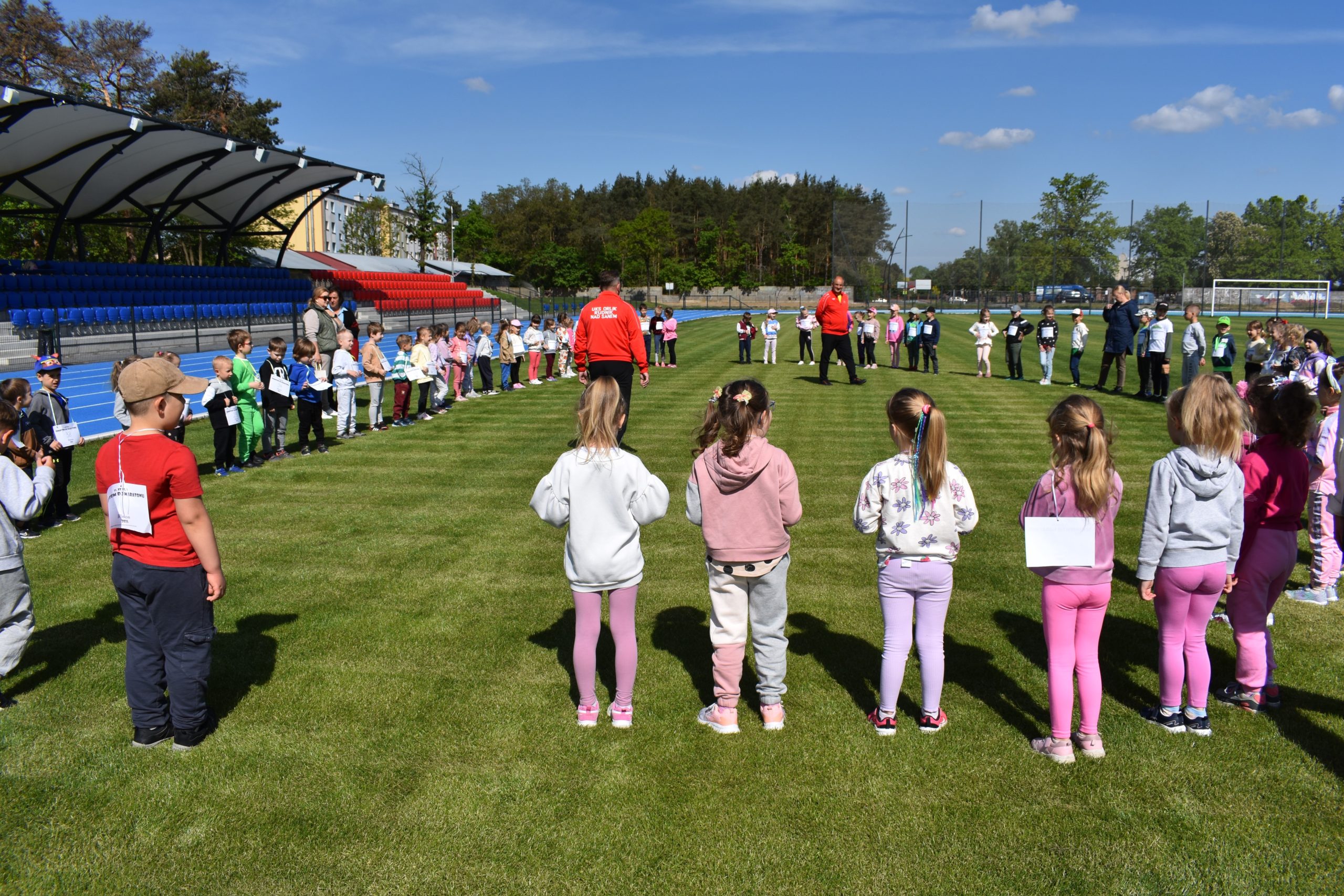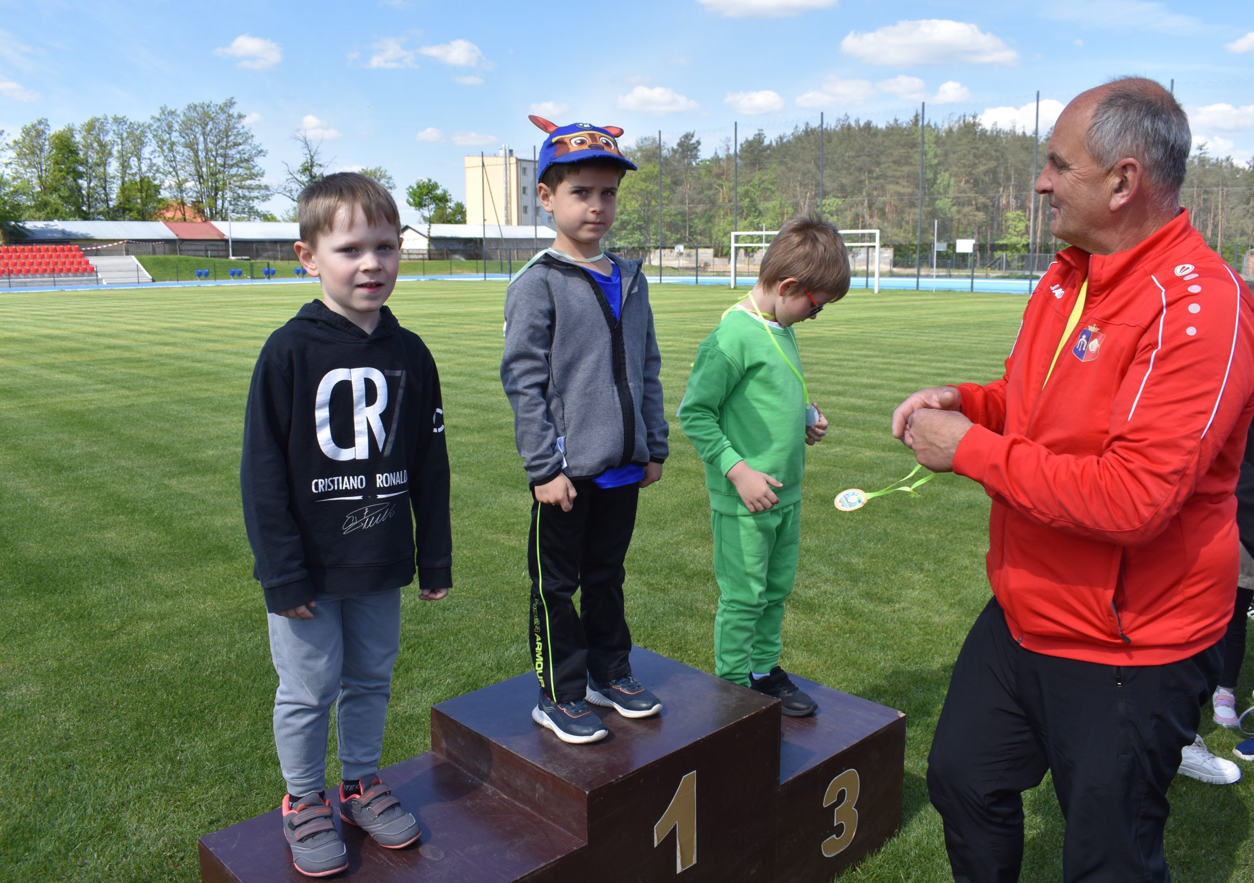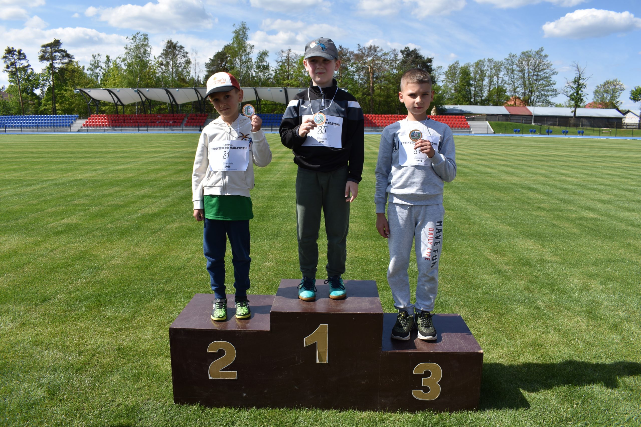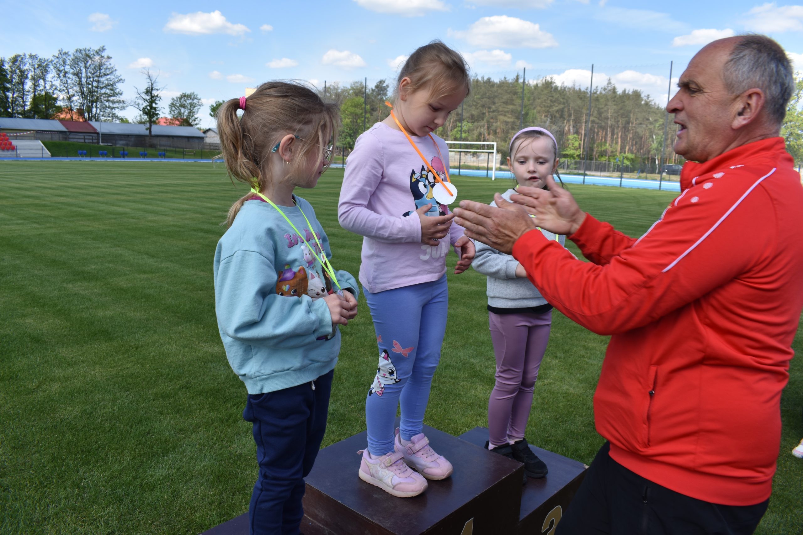 Na zaproszenie Panów trenerów z MOSiR w dniu dzisiejszym wybraliśmy się na stadion, aby wziąć udział w biegu pod hasłem „Sprintem do maratonu”. Naszą wizytę rozpoczęliśmy od rozgrzewki a następnie dzieci pełne energii ruszyły do biegu, pokonując wyznaczoną trasę. Celem wydarzenia jest promocja zdrowego stylu życia i aktywnego spędzania czasu, w tym czasu na świeżym powietrzu, popularyzowanie biegów wśród dzieci oraz kształtowanie u przedszkolaków nawyku podejmowania aktywności fizycznej w dorosłym życiu. Panom trenerom dziękujemy za zorganizowanie biegu i gratulujemy wszystkim uczestnikom maratonu, zawsze pamiętając, że sport to zdrowie!