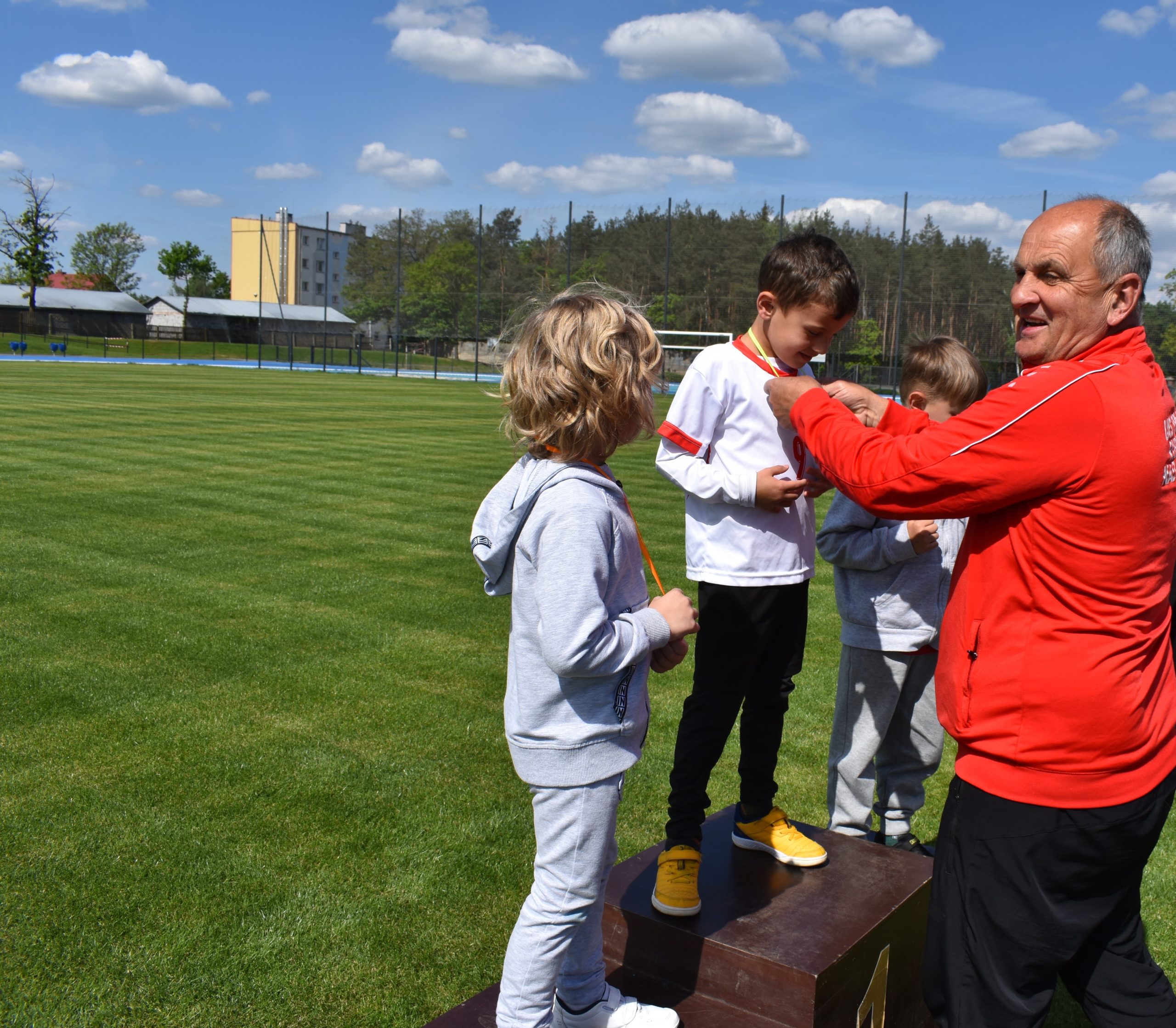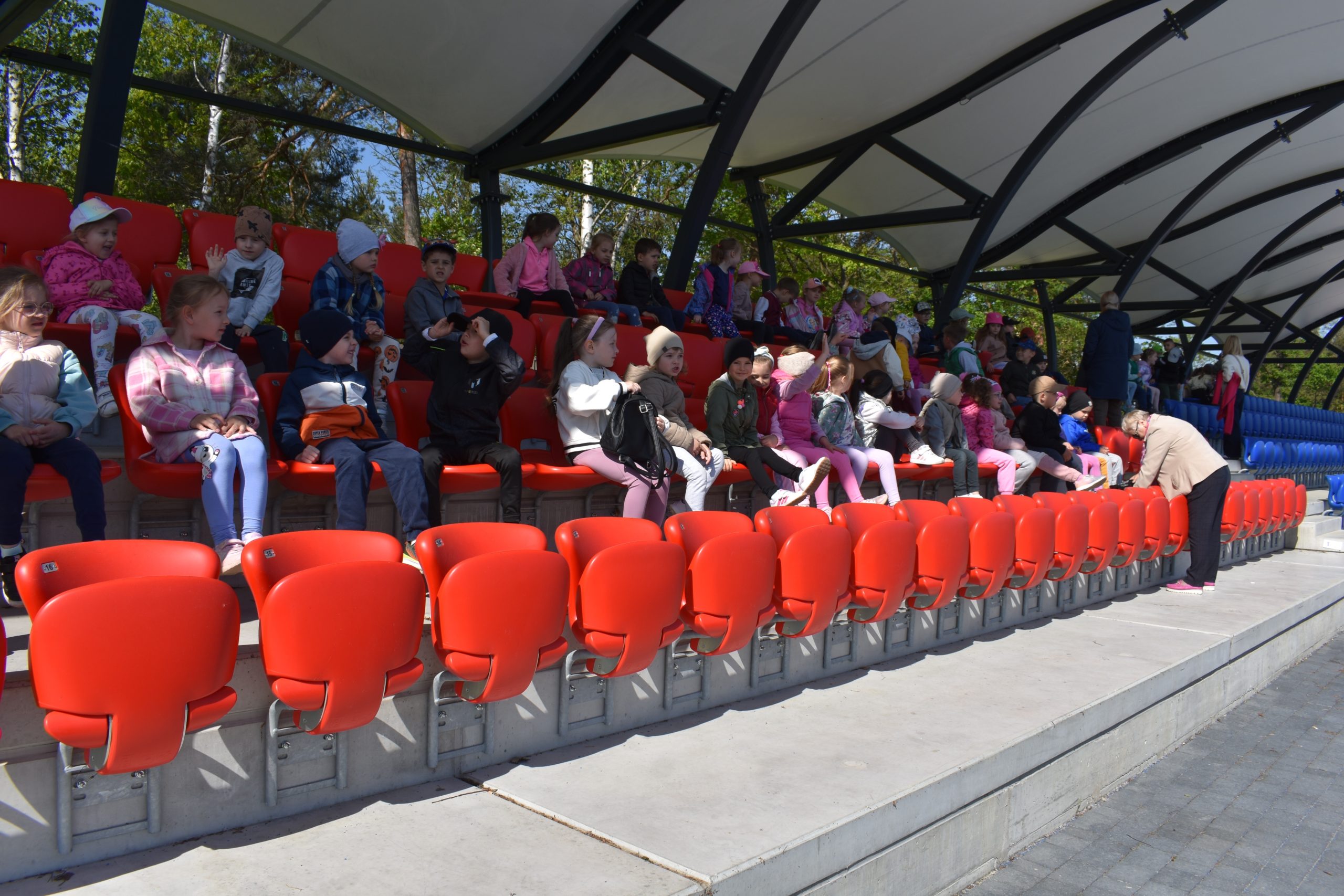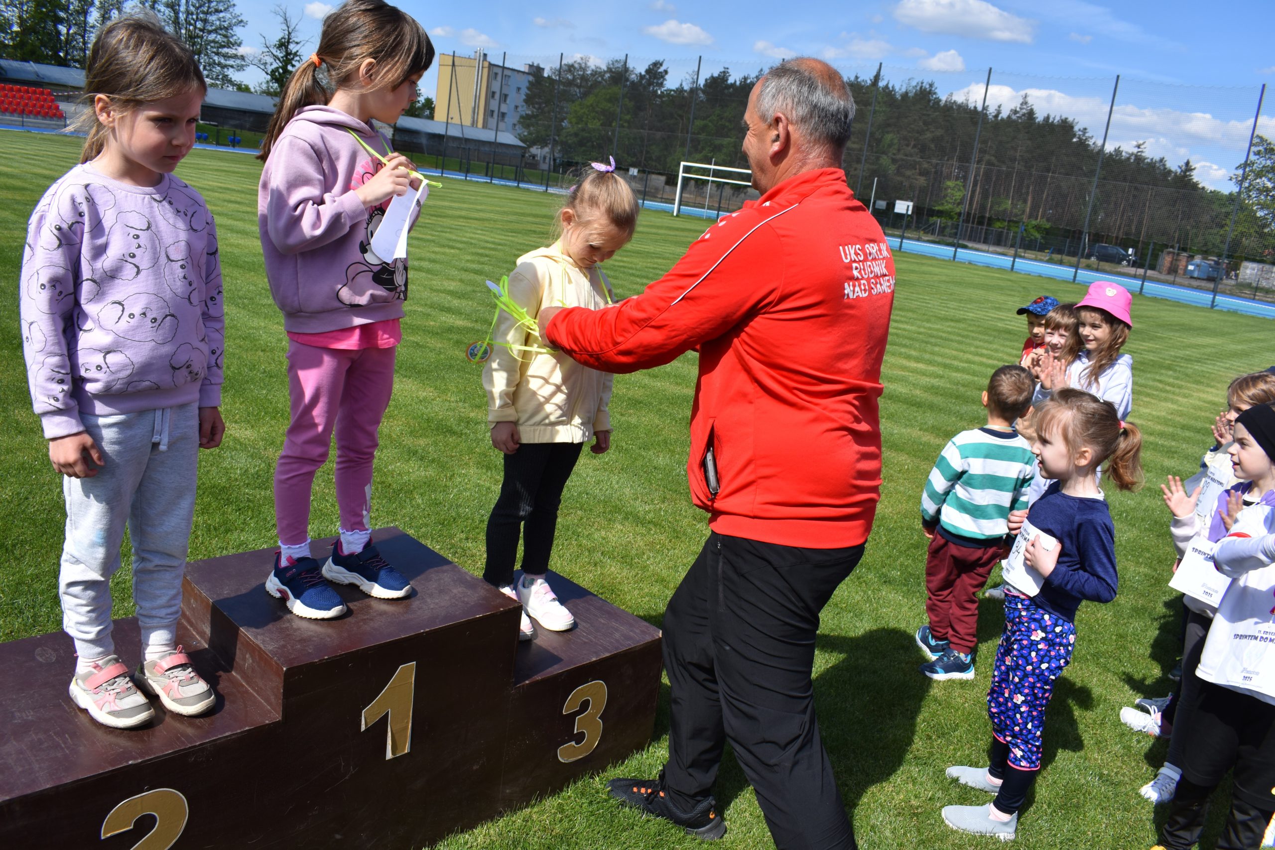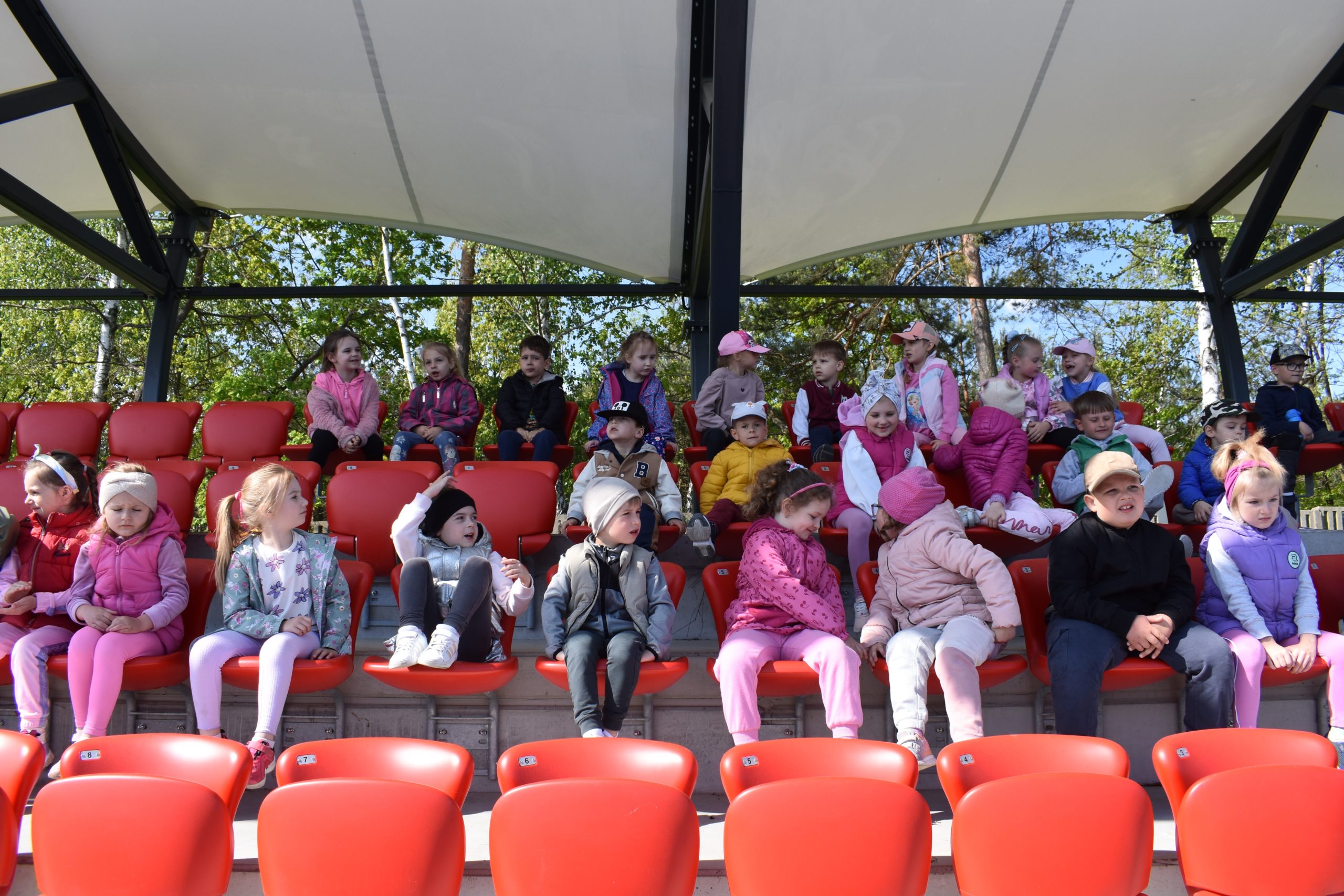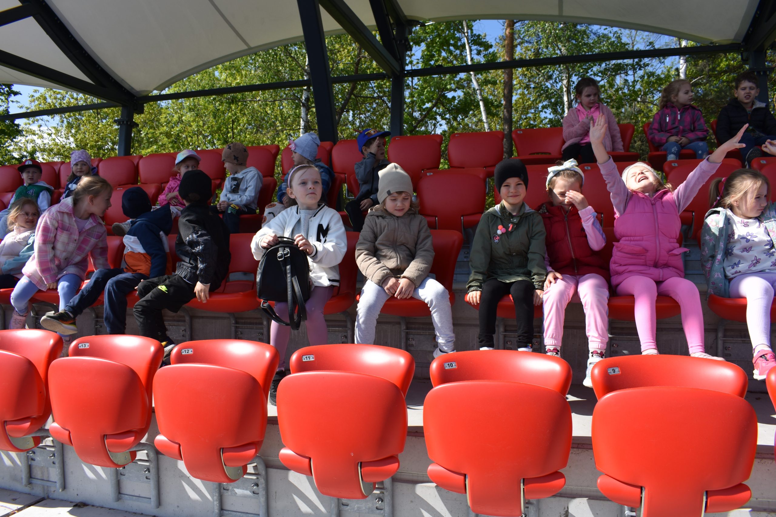 Na zaproszenie Panów trenerów z MOSiR w dniu dzisiejszym wybraliśmy się na stadion, aby wziąć udział w biegu pod hasłem „Sprintem do maratonu”. Naszą wizytę rozpoczęliśmy od rozgrzewki a następnie dzieci pełne energii ruszyły do biegu, pokonując wyznaczoną trasę. Celem wydarzenia jest promocja zdrowego stylu życia i aktywnego spędzania czasu, w tym czasu na świeżym powietrzu, popularyzowanie biegów wśród dzieci oraz kształtowanie u przedszkolaków nawyku podejmowania aktywności fizycznej w dorosłym życiu. Panom trenerom dziękujemy za zorganizowanie biegu i gratulujemy wszystkim uczestnikom maratonu, zawsze pamiętając, że sport to zdrowie!