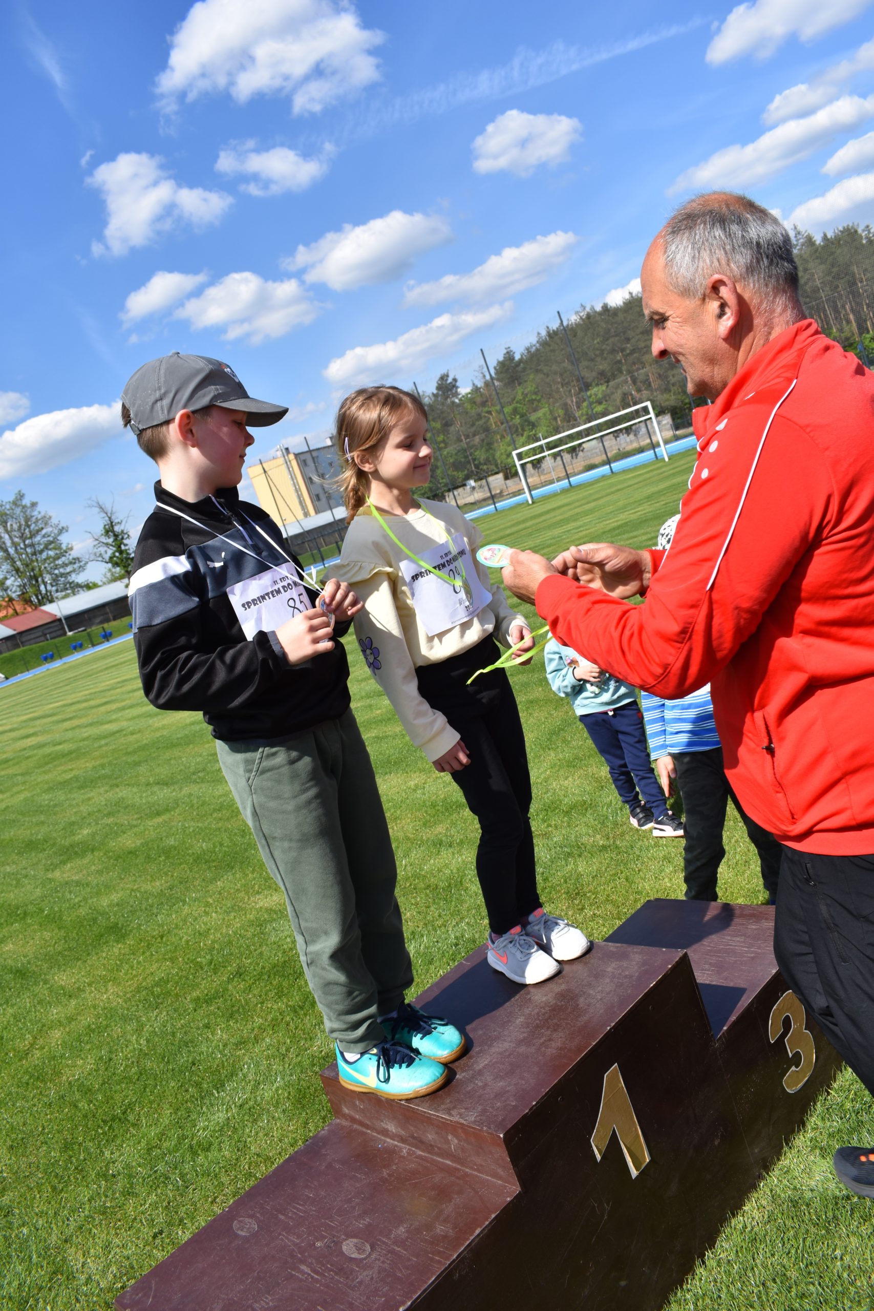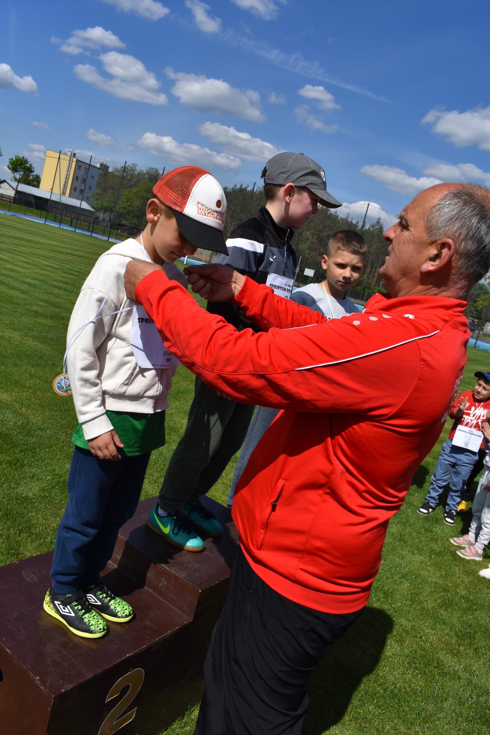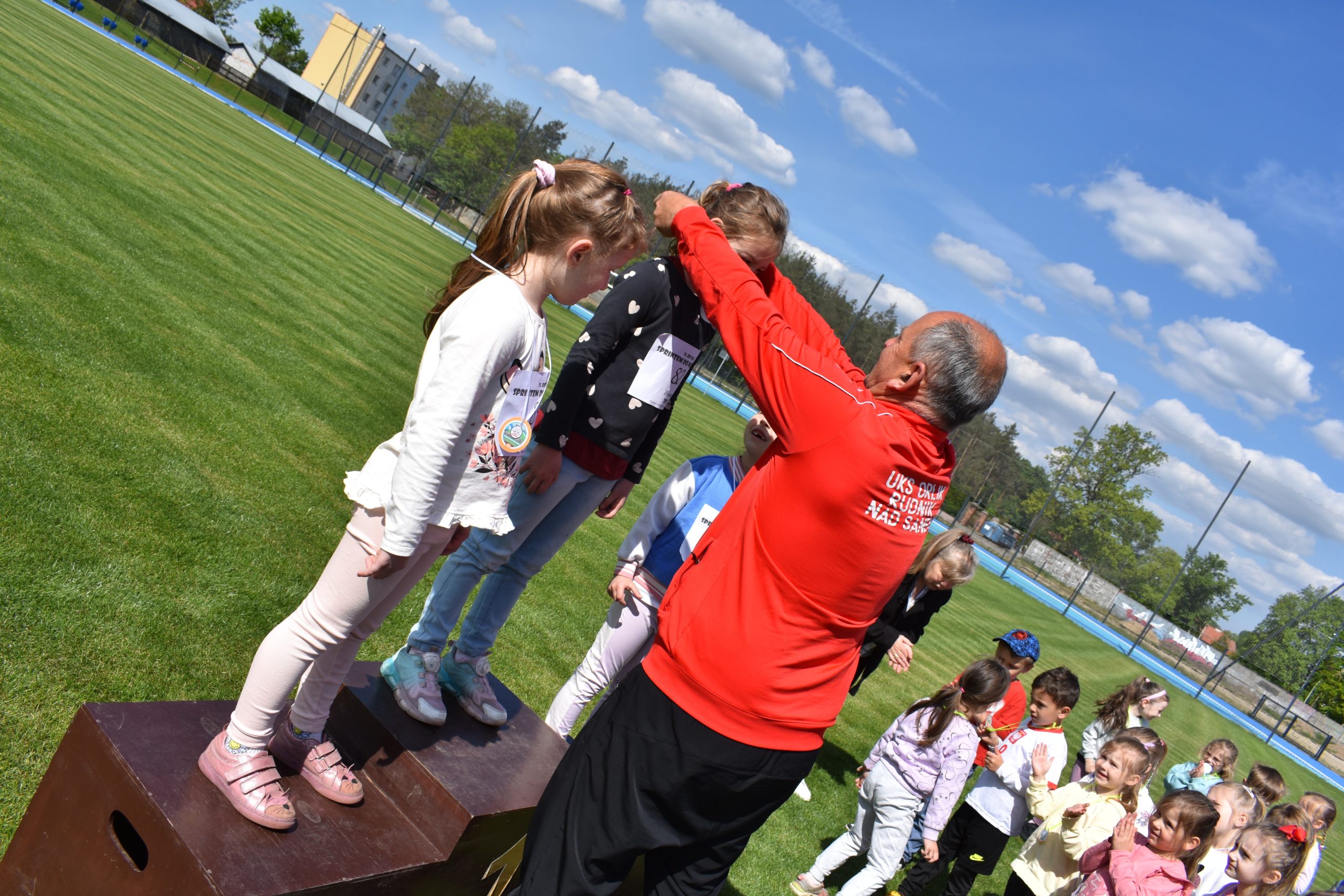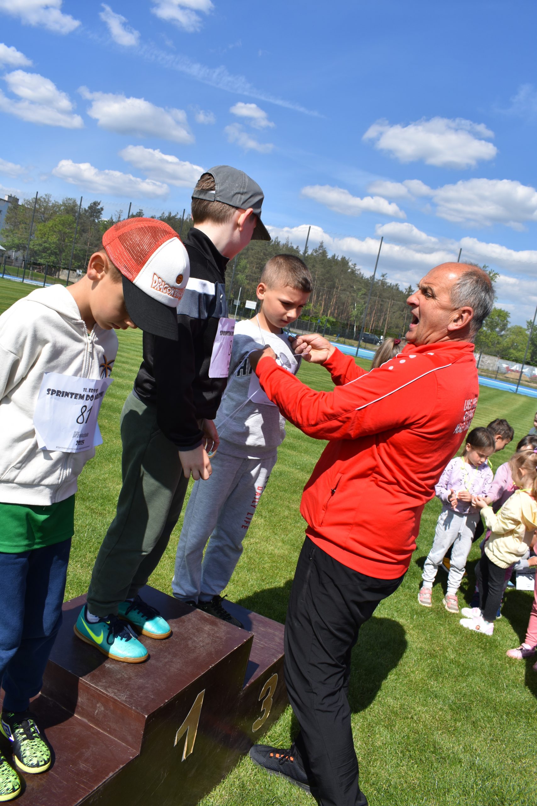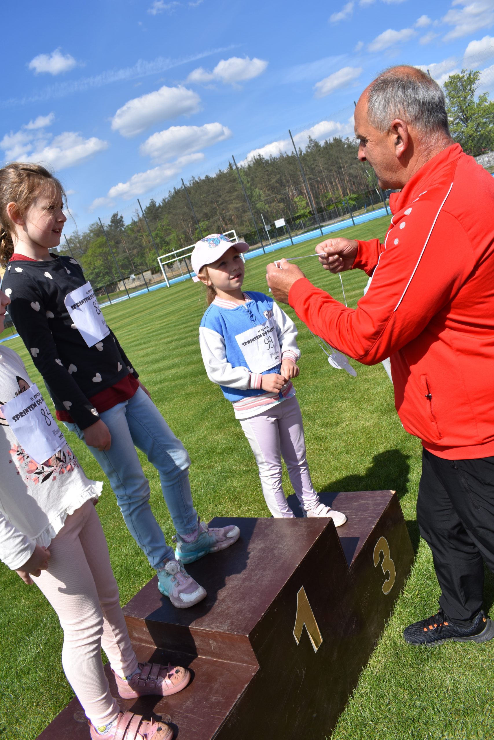 Na zaproszenie Panów trenerów z MOSiR w dniu dzisiejszym wybraliśmy się na stadion, aby wziąć udział w biegu pod hasłem „Sprintem do maratonu”. Naszą wizytę rozpoczęliśmy od rozgrzewki a następnie dzieci pełne energii ruszyły do biegu, pokonując wyznaczoną trasę. Celem wydarzenia jest promocja zdrowego stylu życia i aktywnego spędzania czasu, w tym czasu na świeżym powietrzu, popularyzowanie biegów wśród dzieci oraz kształtowanie u przedszkolaków nawyku podejmowania aktywności fizycznej w dorosłym życiu. Panom trenerom dziękujemy za zorganizowanie biegu i gratulujemy wszystkim uczestnikom maratonu, zawsze pamiętając, że sport to zdrowie!